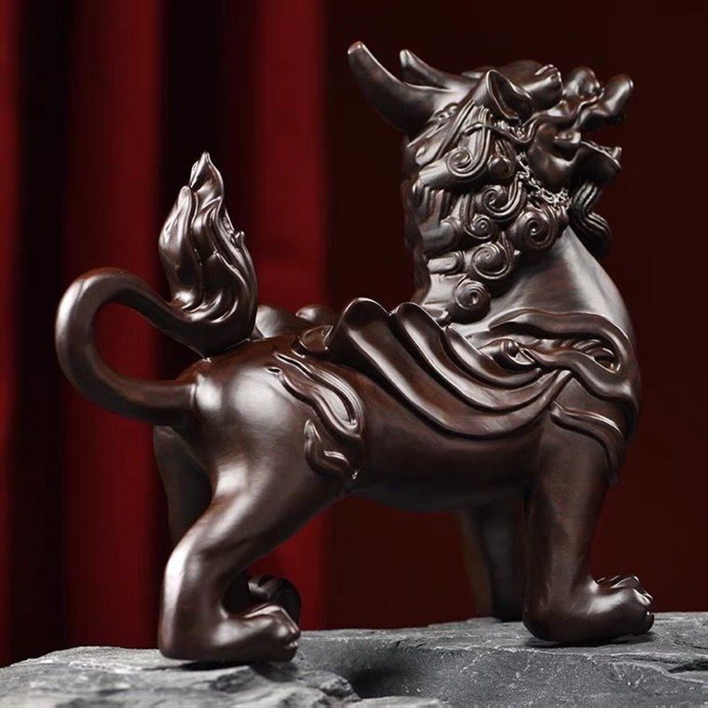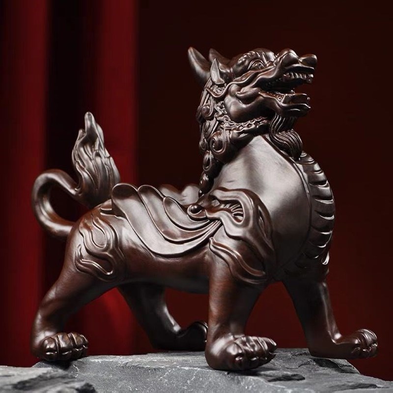 木雕摆件貔貅实木头雕刻家居玄功客厅书架办公司S开业装饰工艺礼