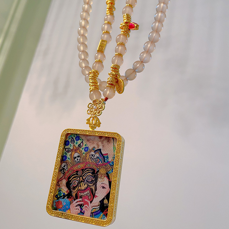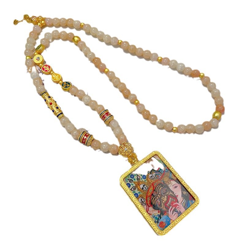 新中式佛牌链黄水晶珠链唐卡扣项链嘎乌盒五爷扎基拉姆吊坠毛衣链