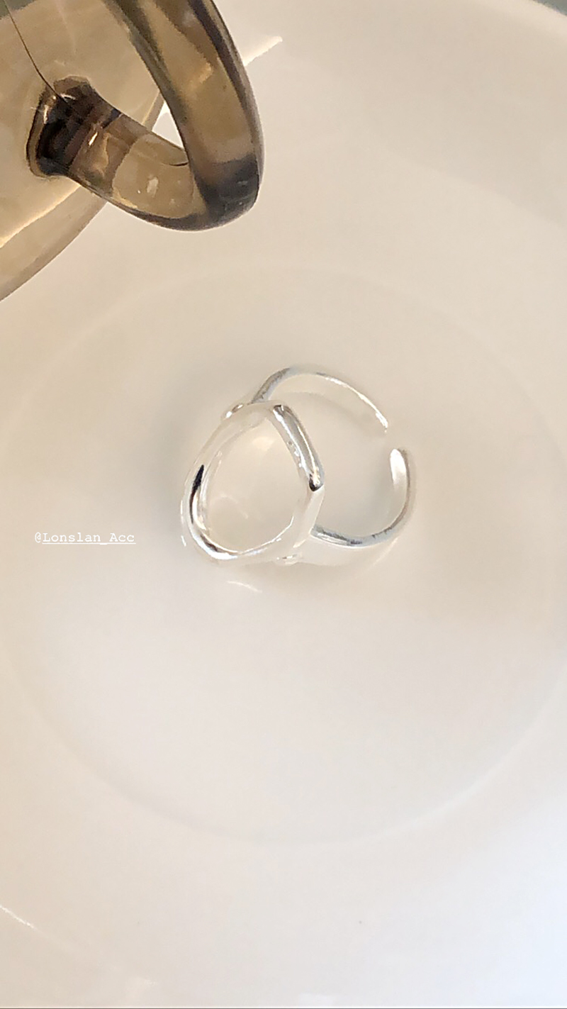 Lonslan acc韩国戒指冷淡风不规则凹凸面宽面女戒指镀金银食指环