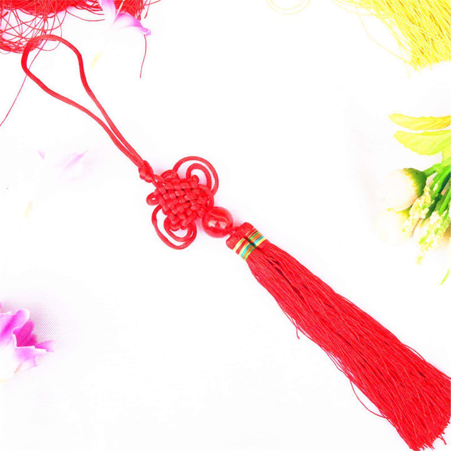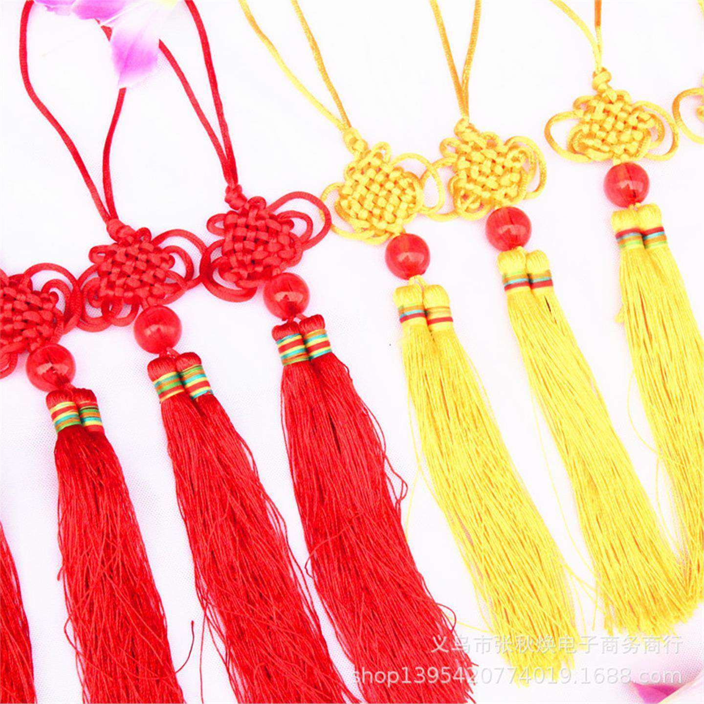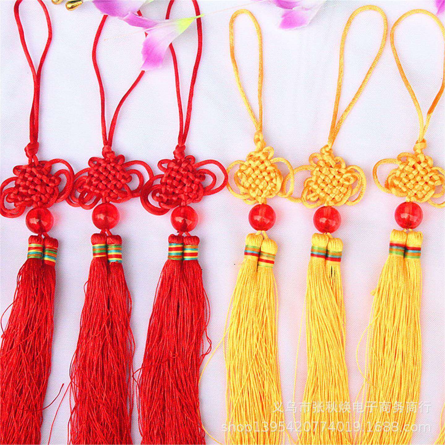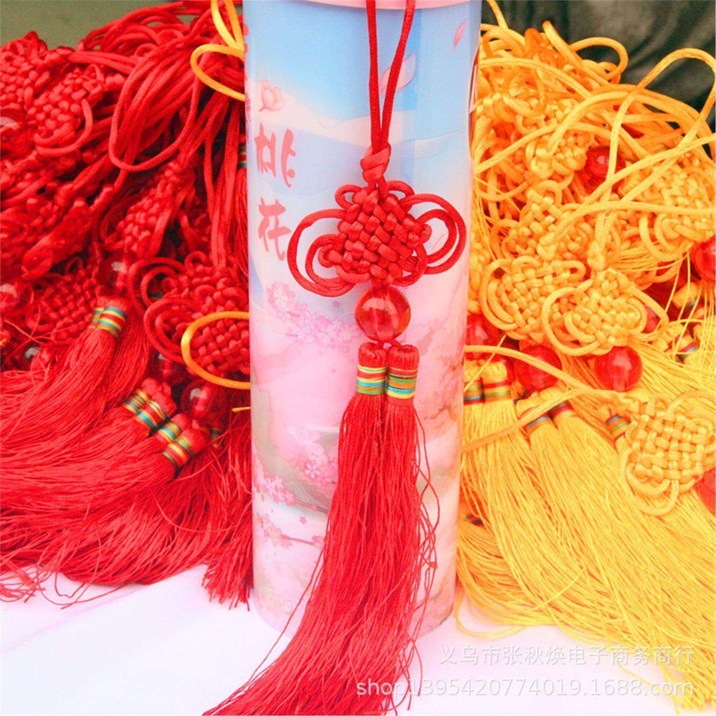 红色珠子双流苏6盘结 金黄色小中国结手工艺品盆景装饰小挂件