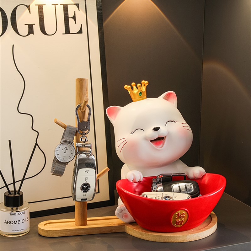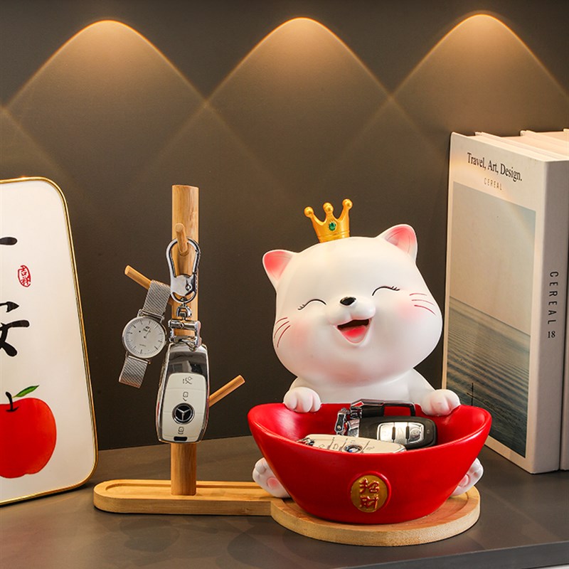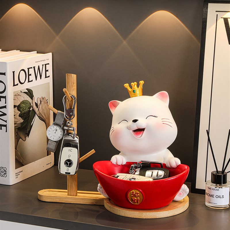 入户玄关钥匙收纳摆件招财猫进门C口客厅鞋柜装饰搬家乔迁新居礼