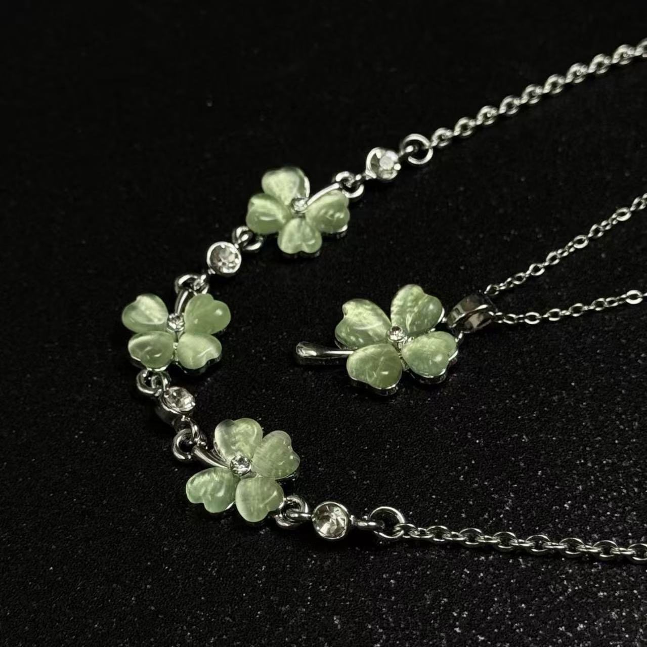 四叶草幸运吊坠手链女ins小众设计高级感锁骨简约轻奢森系项链