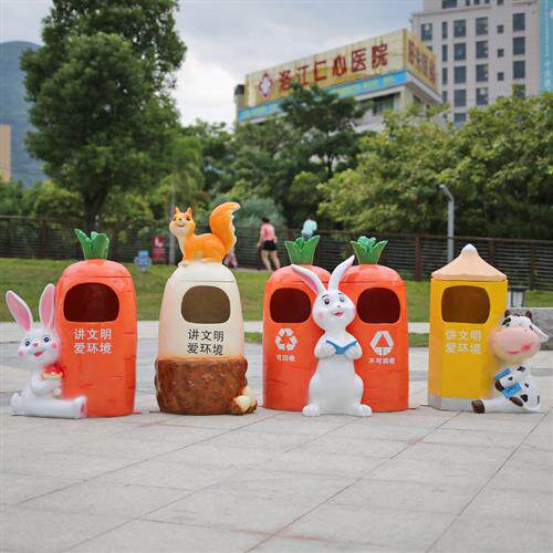 户外景观草坪雕塑玻璃钢卡通动物造型垃圾桶摆件幼儿园果皮箱装饰