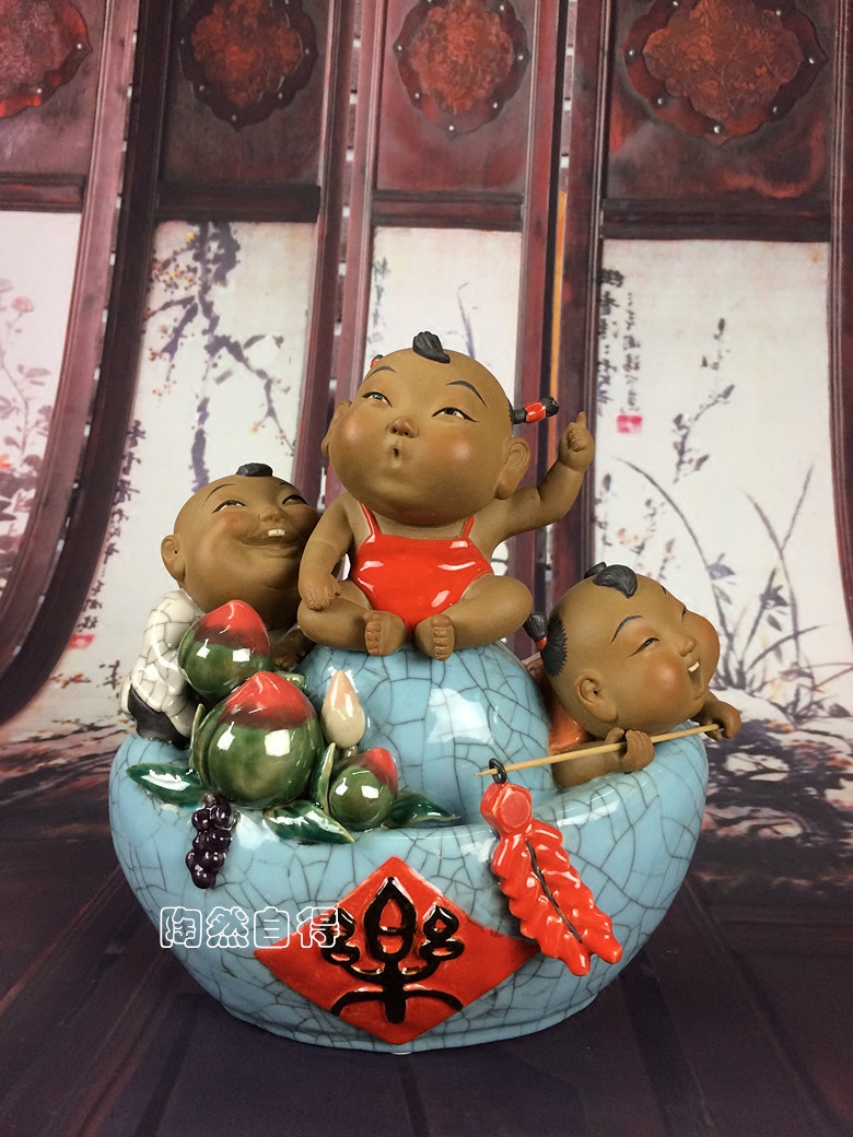 吉祥三宝小孩娃娃儿童卡通风格陶瓷石湾公仔摆件结婚礼品添丁发财