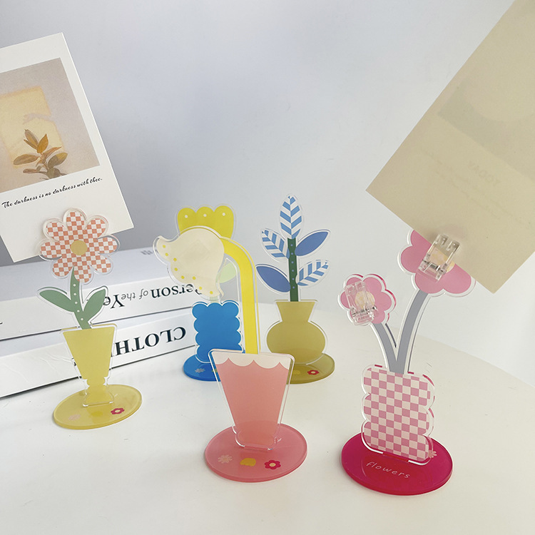 亚克力便签夹桌面照片立式留言可爱花朵举牌小摆件立牌相片夹子