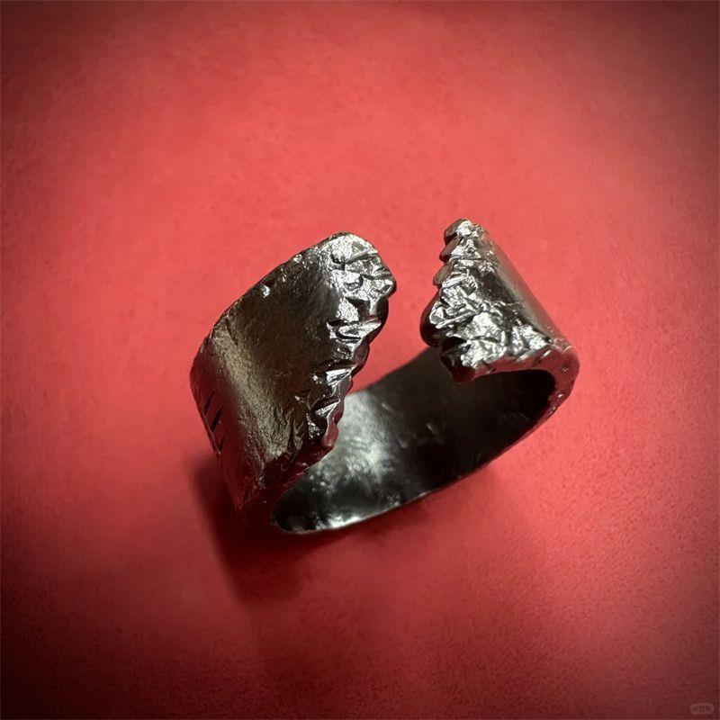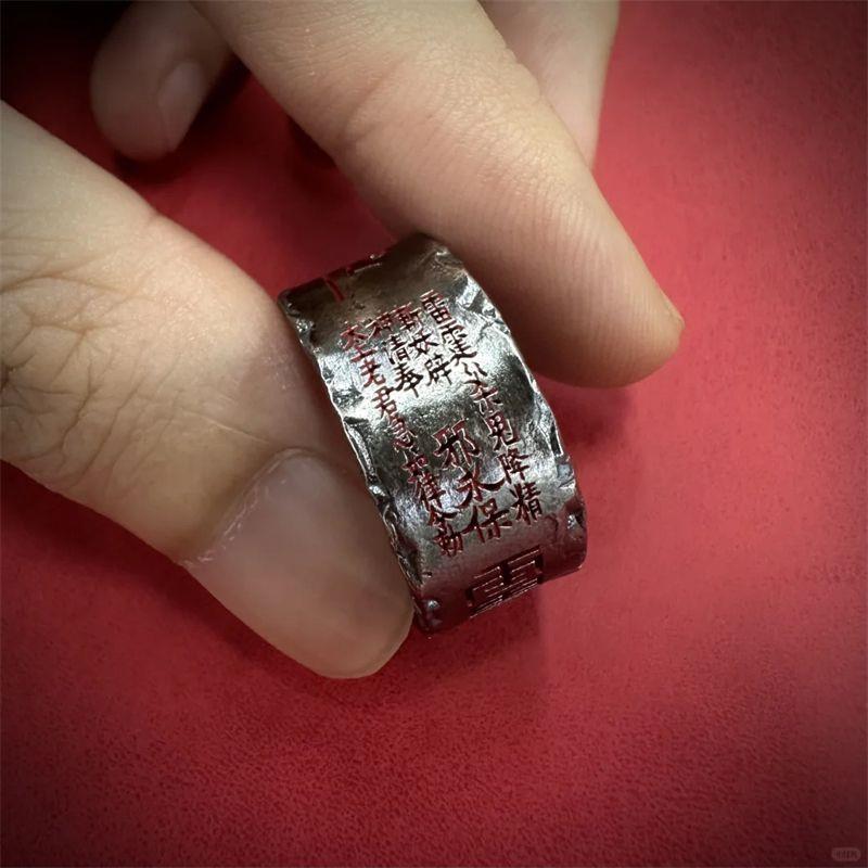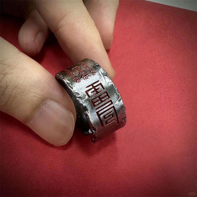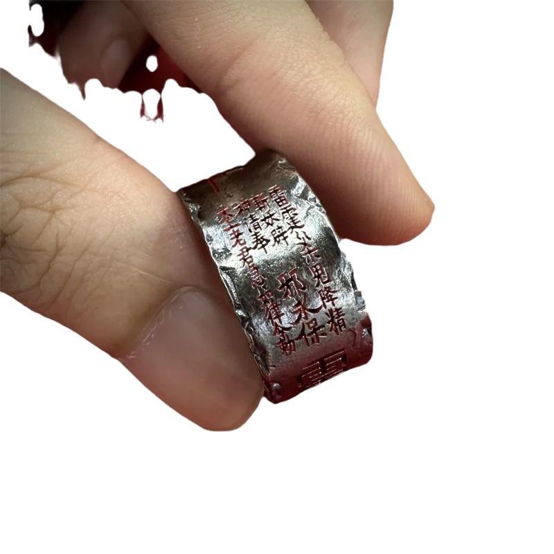 道系青年雷令山鬼花钱戒指国潮复古做旧手工錾刻传统文化开口指环