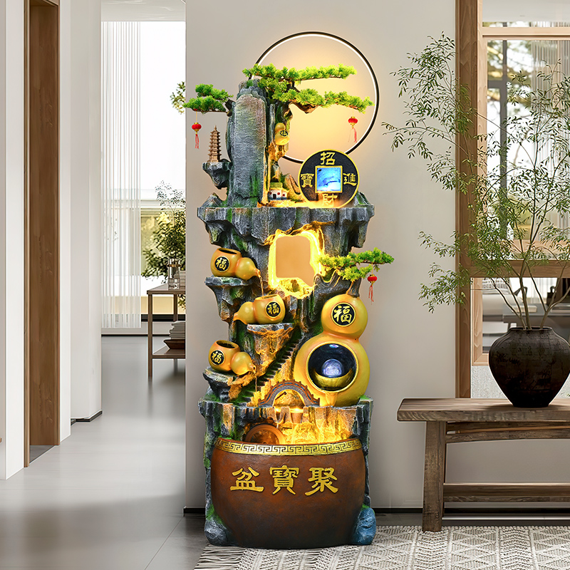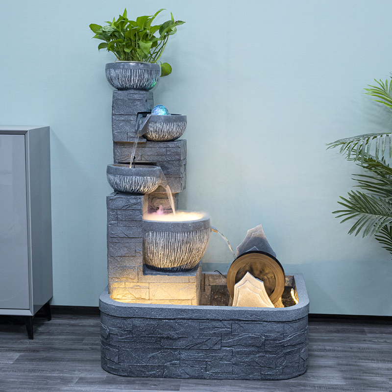 高山流水摆件循环水客厅鱼缸加湿器风车假山喷泉阳台景观鱼池造景