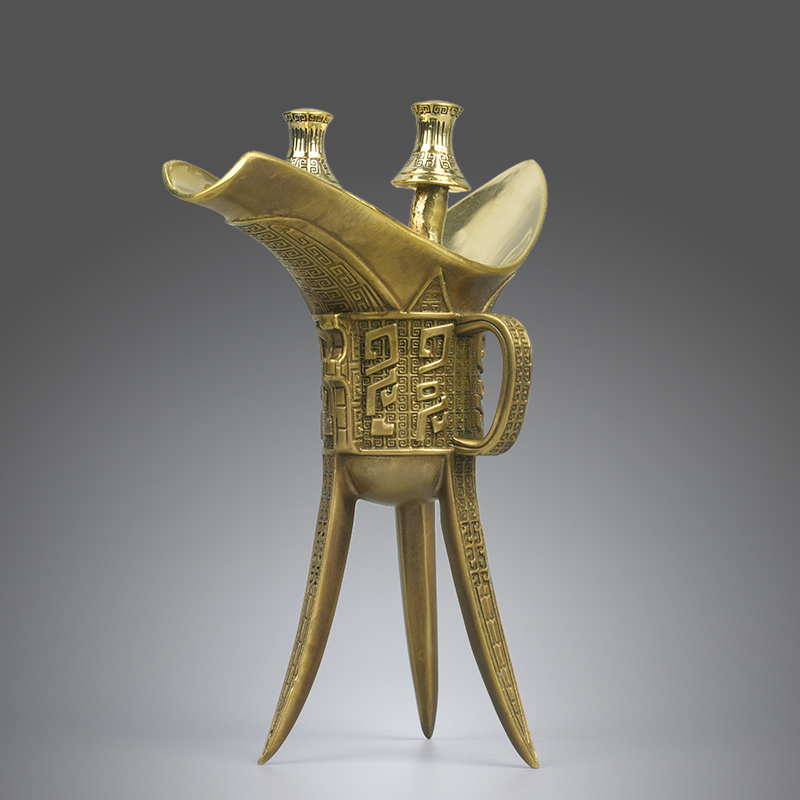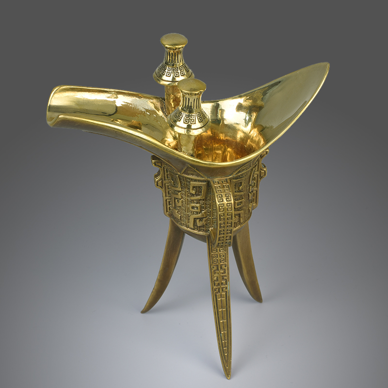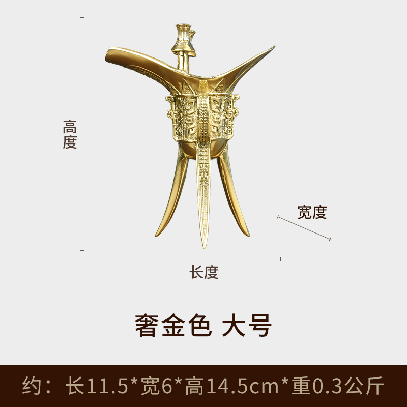 全铜酒杯摆件复古酒樽家用古代三足黄铜爵杯帝王酒樽酒鼎杯铜酒具