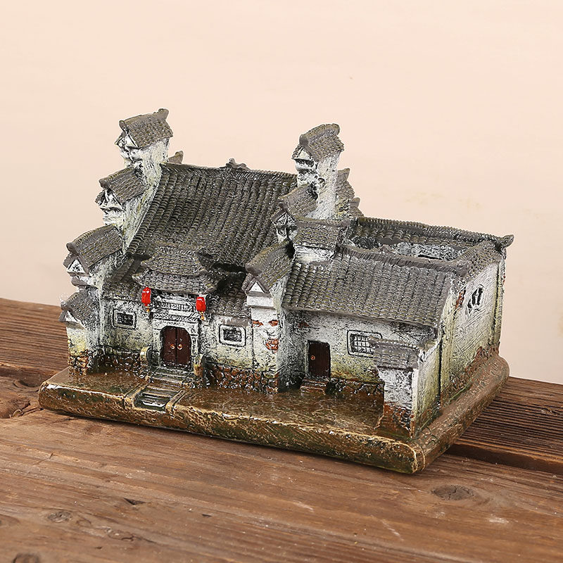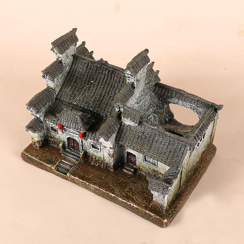 徽派房子鱼缸装饰摆件盆栽盆景造景摆设复古老房子树脂工艺品怀旧