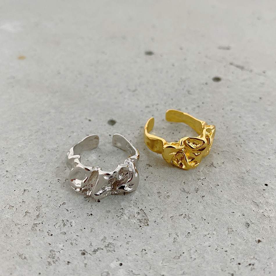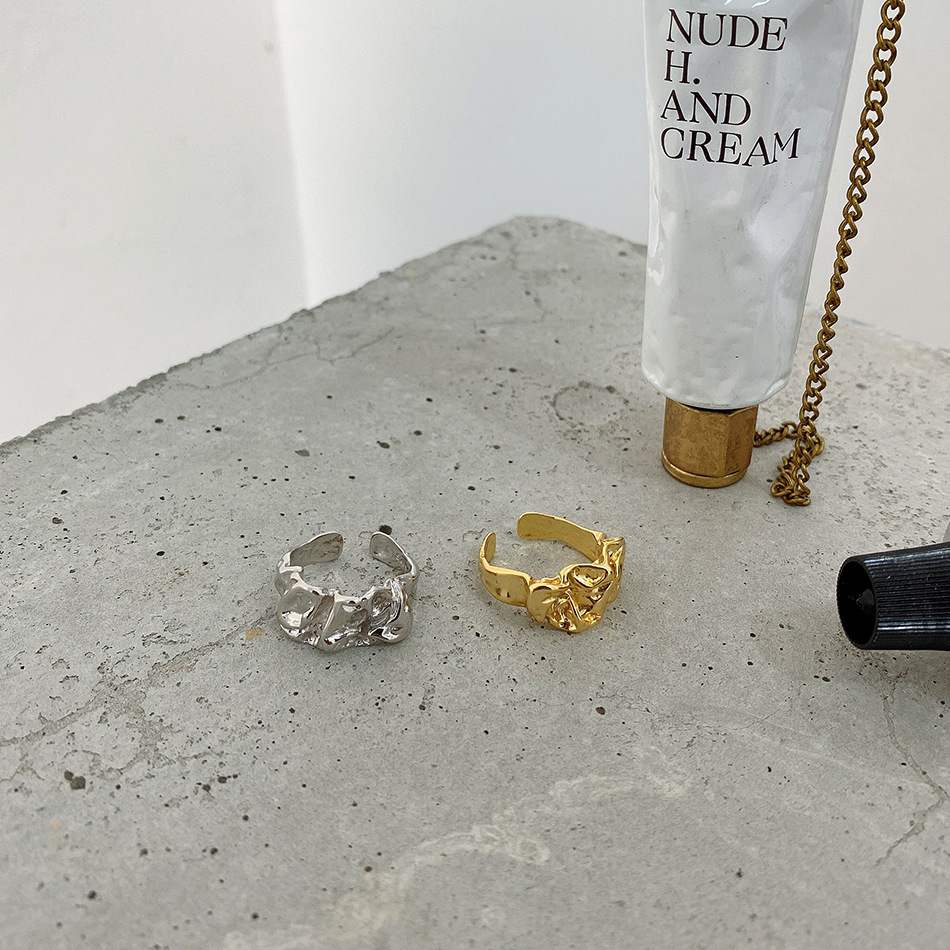 夸张S925银几何不规则戒指女复古时尚嘻哈熔岩开口指环个性食指戒