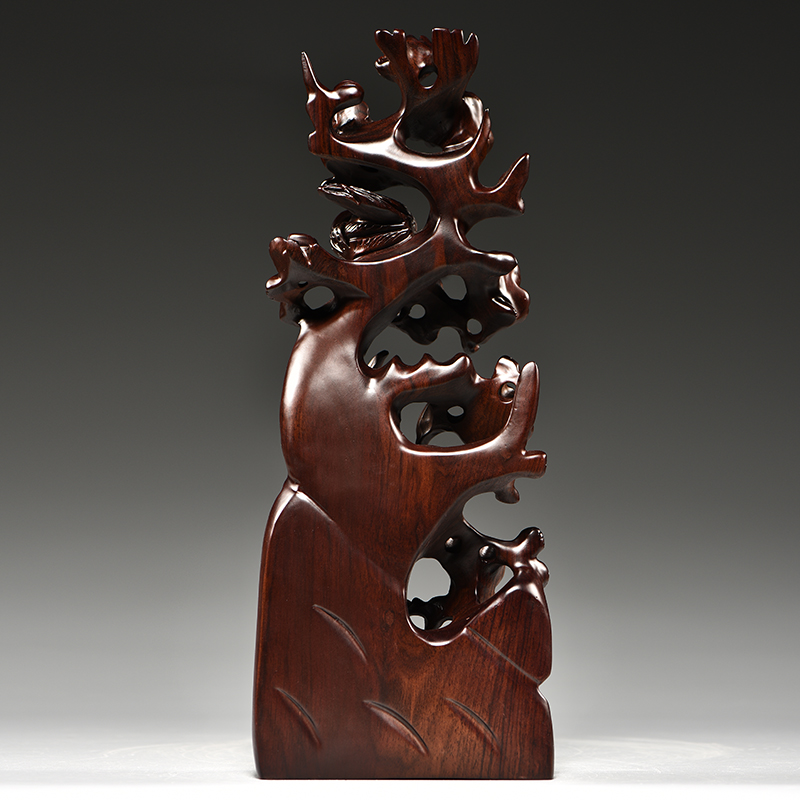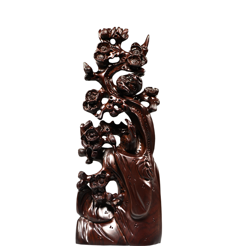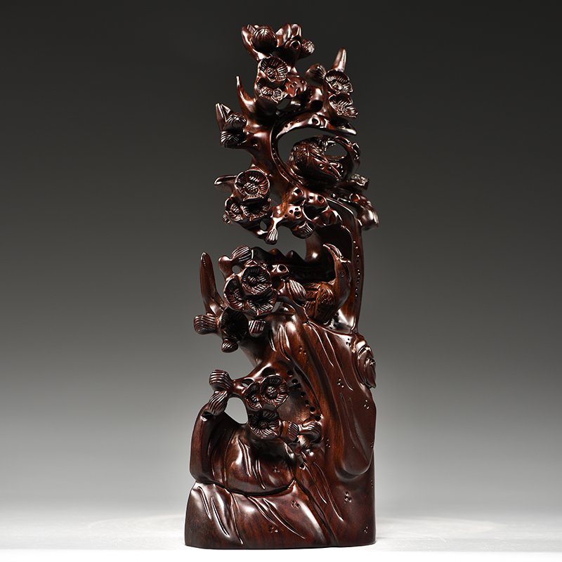 黑檀实木雕刻喜上眉梢根雕摆件雕刻工艺品家居客厅玄关装饰送礼品