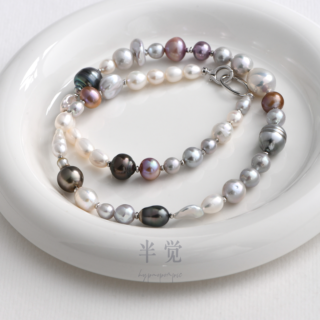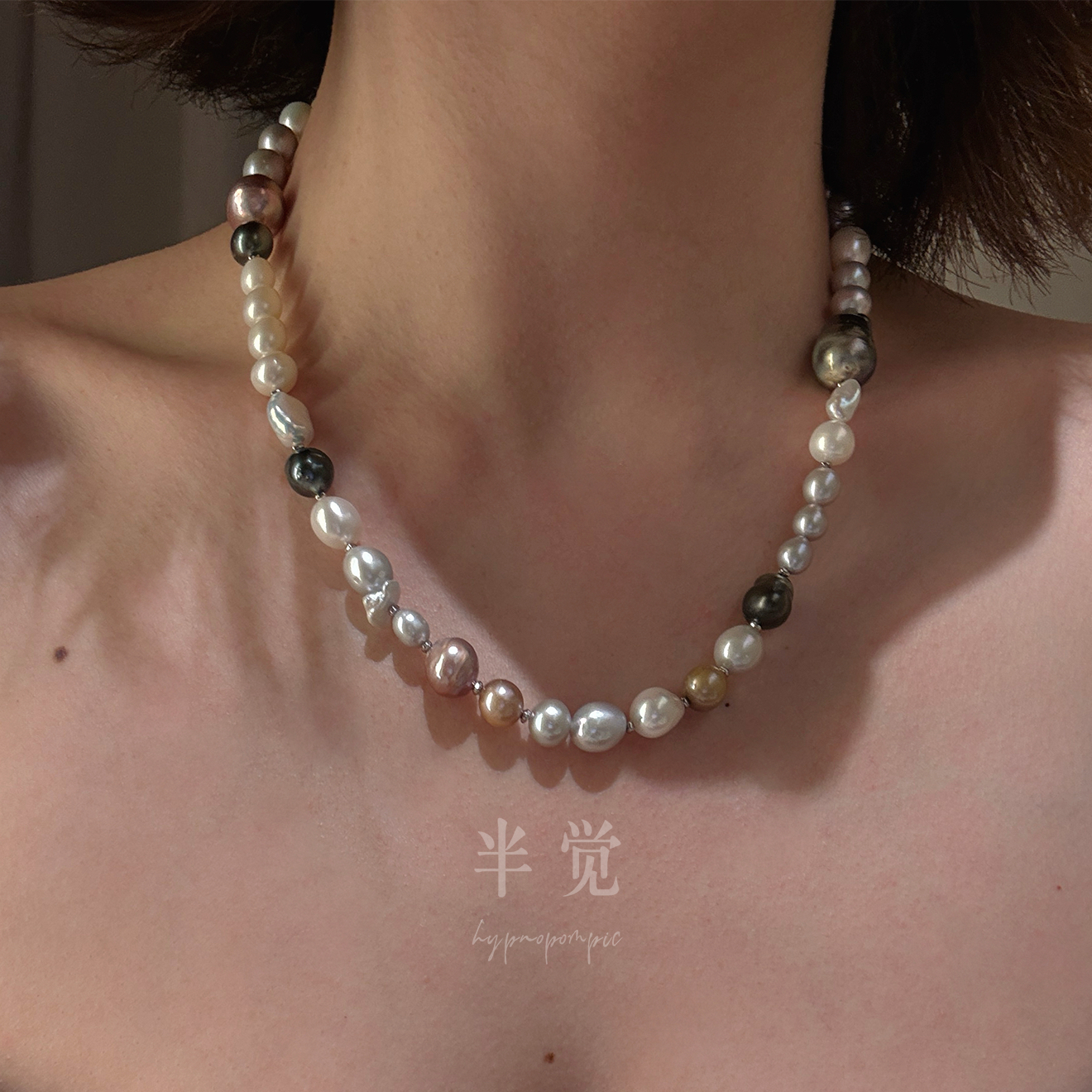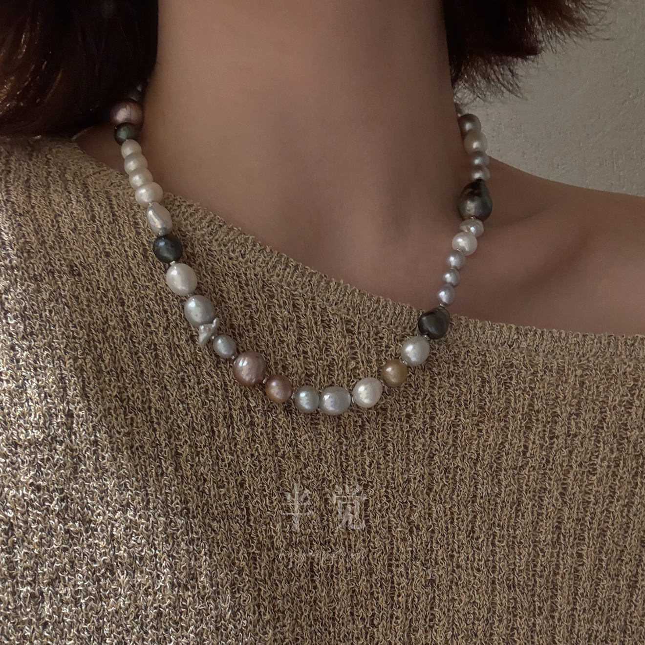 半觉原创配色大溪地珍珠淡水巴洛克高级色混彩珍珠项链