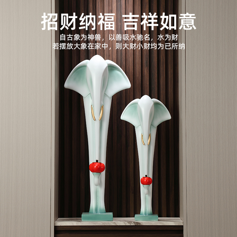 招财大象玄关摆件客厅壁龛电视柜落地艺术装饰品乔迁新居搬家礼物