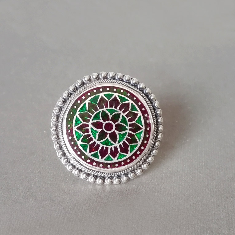 超炫民族风925纯银指环植物花卉复古个性珐琅釉食指中指戒指女