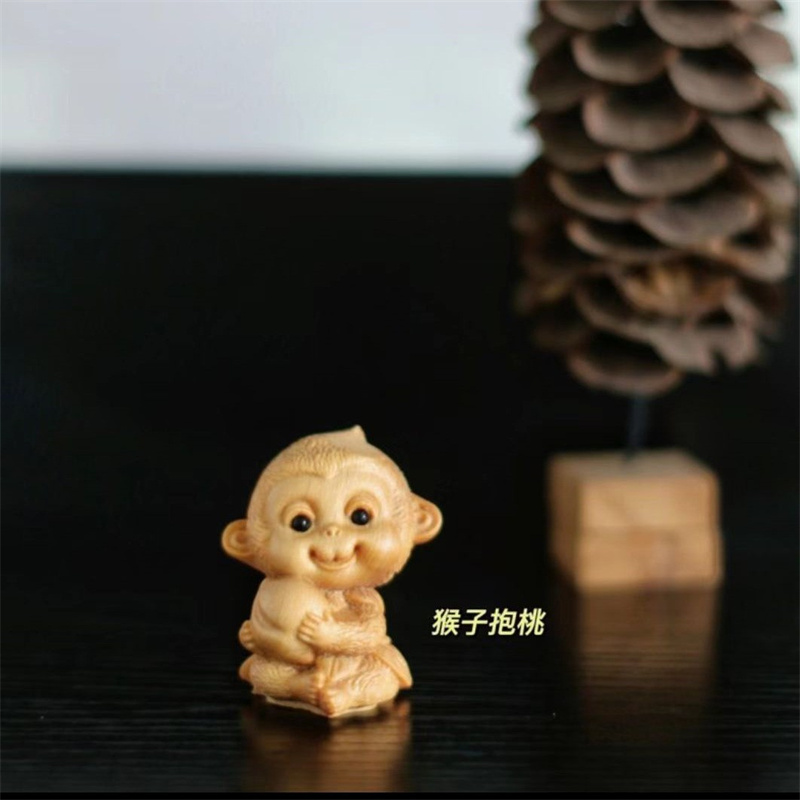 崖柏木雕刻猴子抱桃小摆件生肖猴手把件装饰品挂件创意工艺品礼品