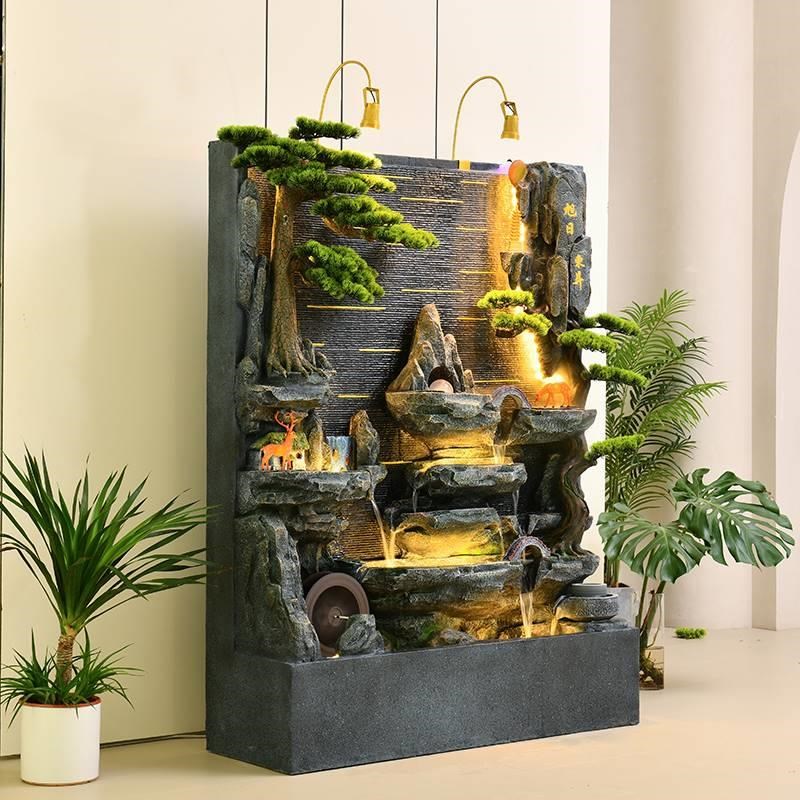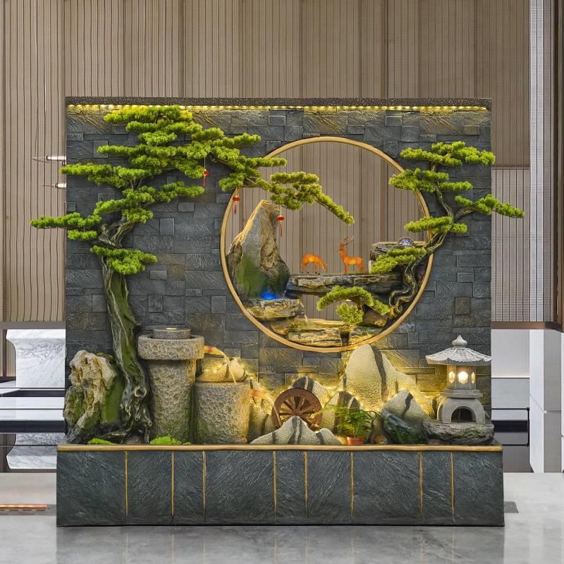 鱼池景观摆件水幕墙流水屏风隔断办公室客厅玄关假山喷泉背景墙