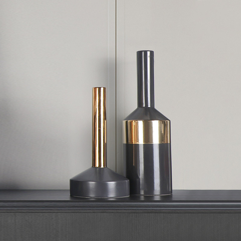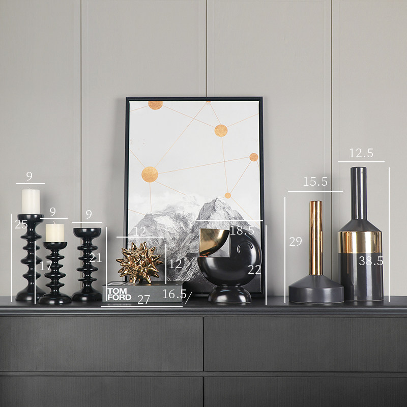 现代轻奢客厅玄关柜组合摆件黑色金色烛台细口陶瓷花器卧室装饰品