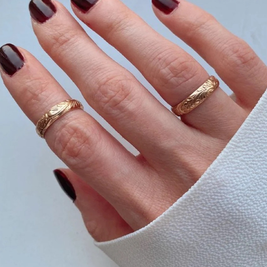 不撞款进口14K注金戒指花纹复古食指环闭口淡金色女尾戒不掉色