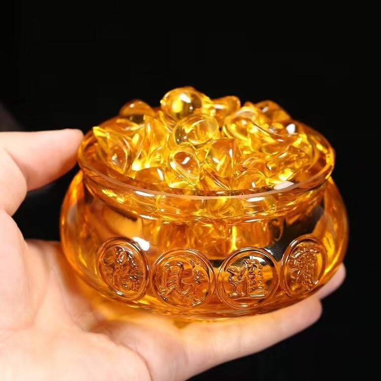 高档大号黄水晶聚宝盆摆件家居客厅办公室装饰品开业乔迁新年礼品