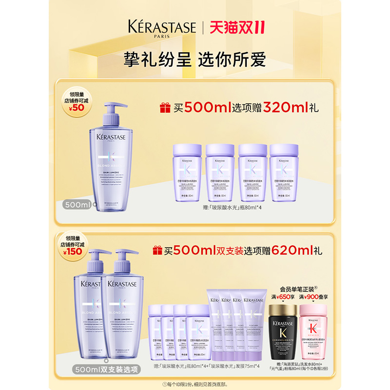【双11现货速抢】卡诗耀光玻尿酸凝色洗发露水光柔顺洗发水顺滑