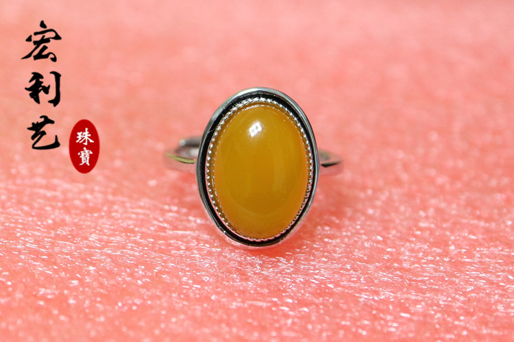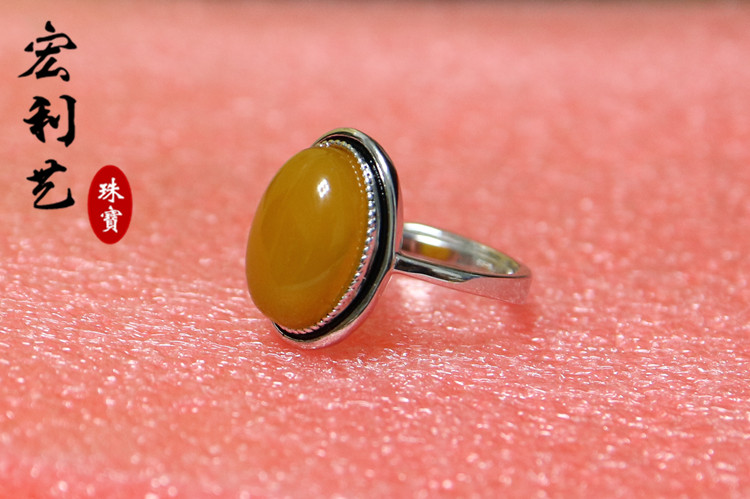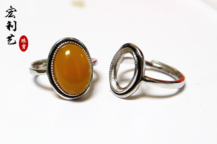 S925纯银戒托10*14琥珀简约款戒指托镶松石蜜蜡空托8*12银托12*16