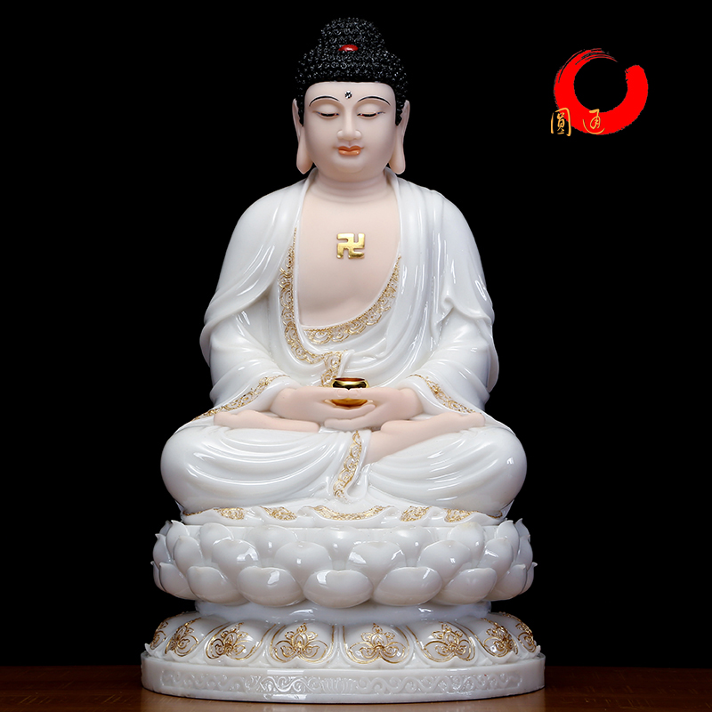 圆通释迦牟尼佛像汉白玉三宝如来佛祖阿弥陀佛释迦摩尼佛坐像摆件