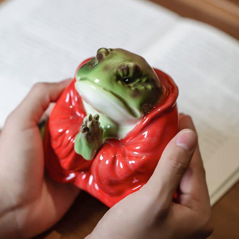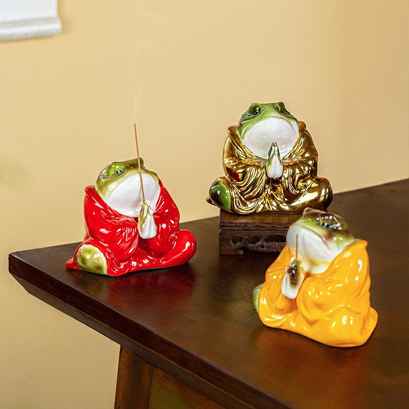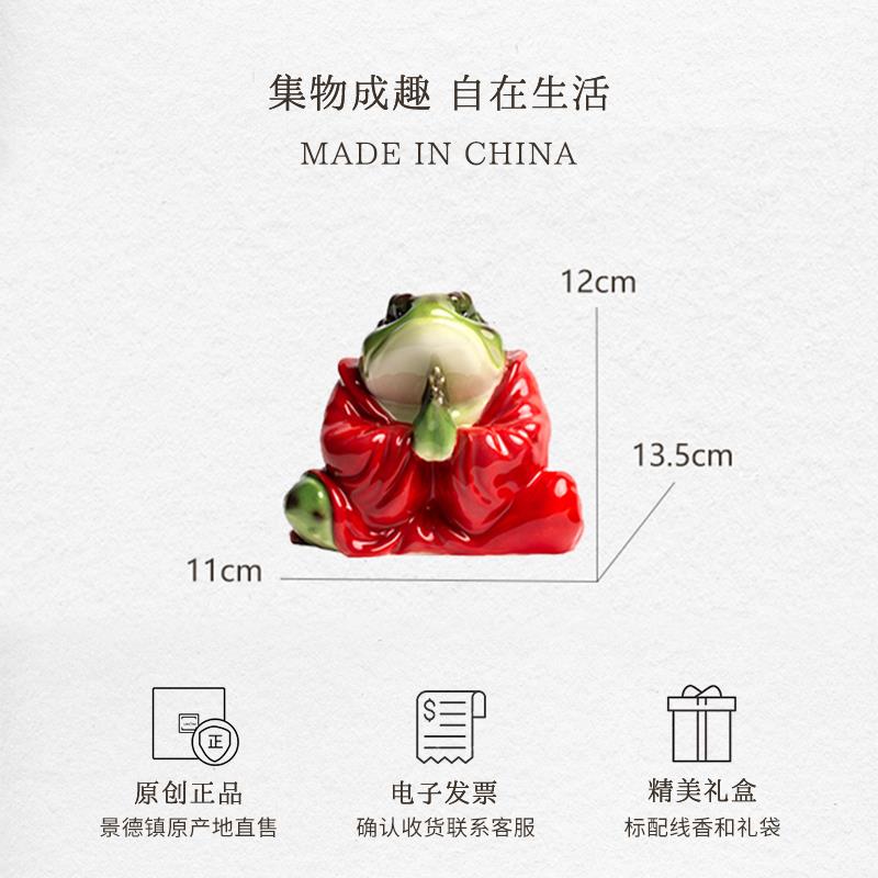 禅意青蛙金蟾招财摆件红色陶瓷香插开业礼物客厅办公室桌面装饰品