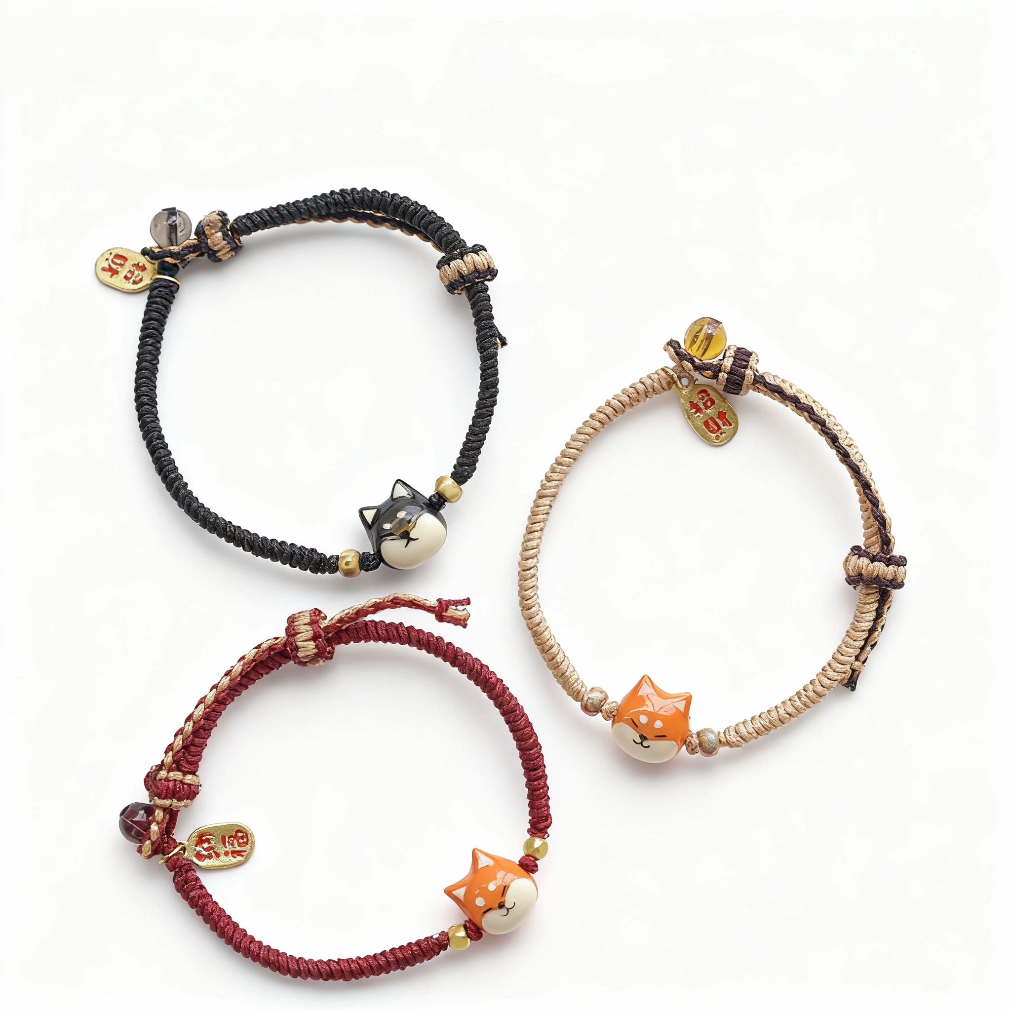 原创设计黑色狗狗柴犬日系可爱文艺纯手工编织定制手链
