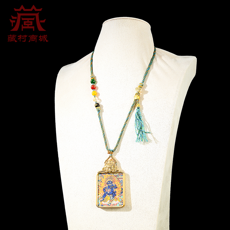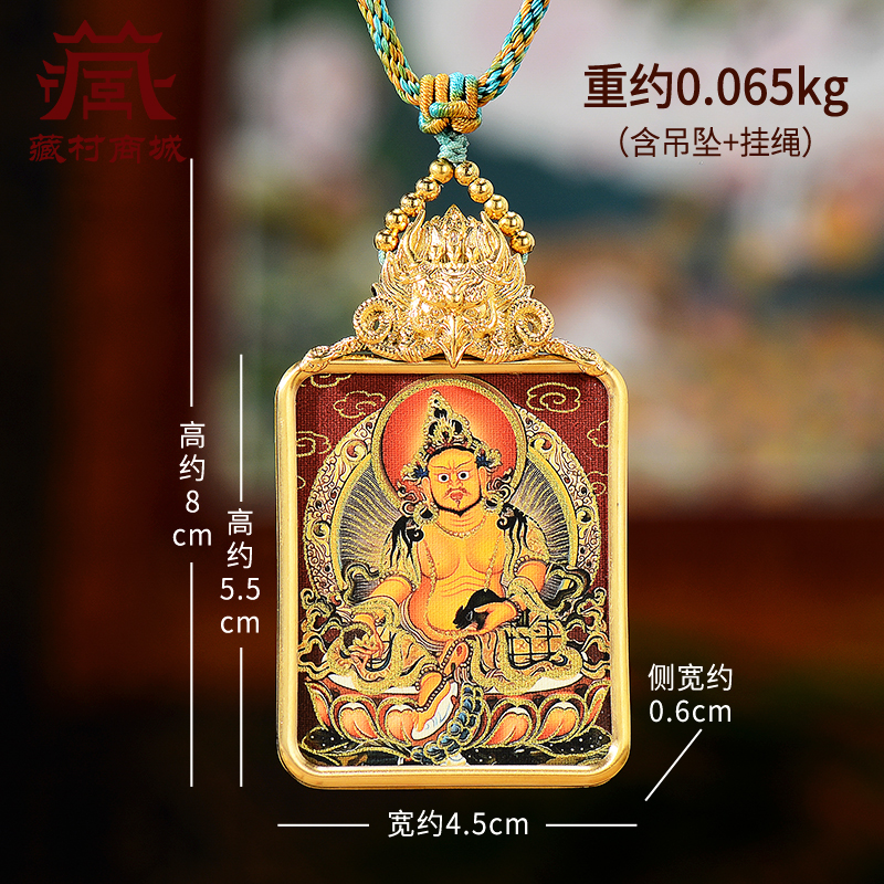 藏村黄财神唐卡吊坠民族风男女款五姓财神项链扎基拉姆挂坠