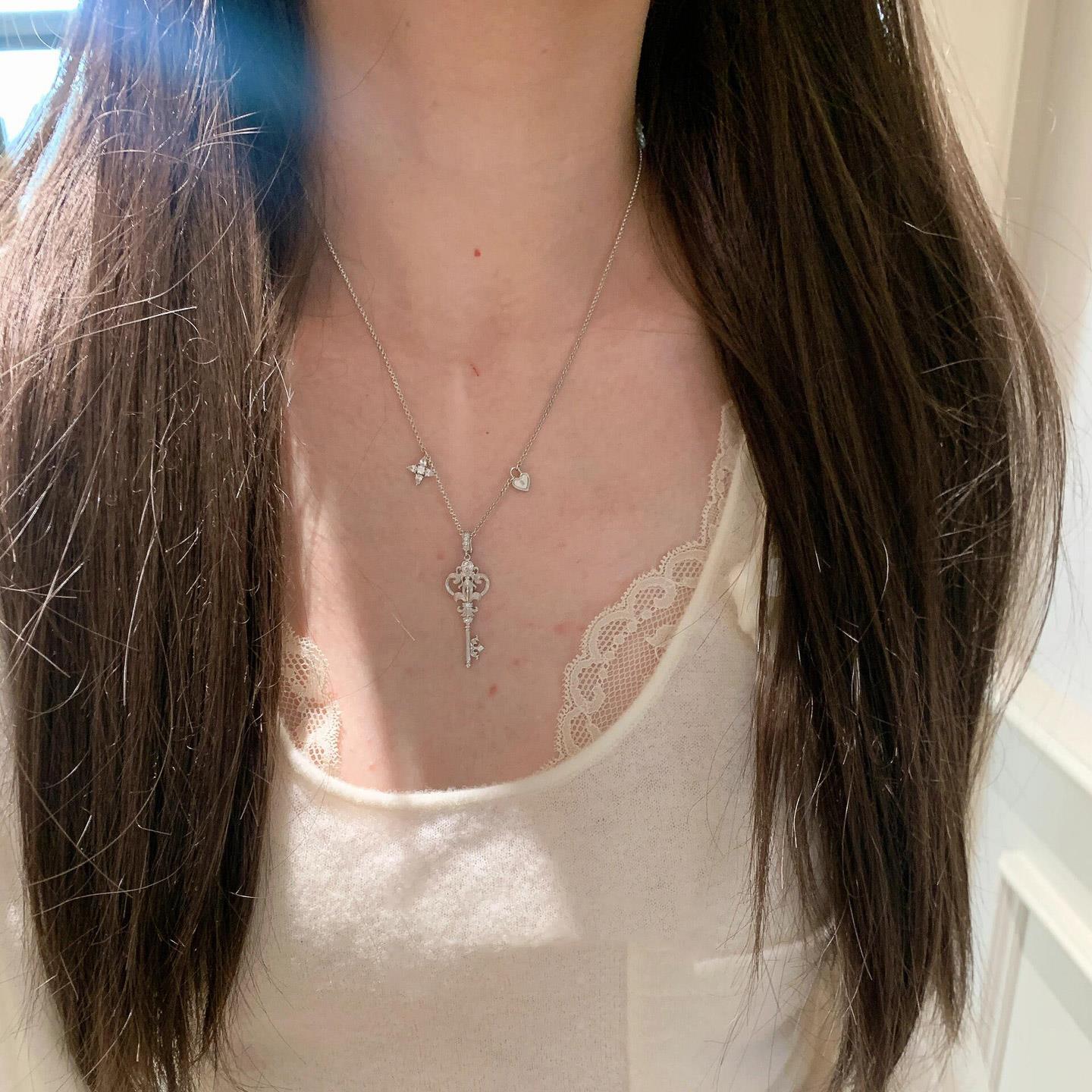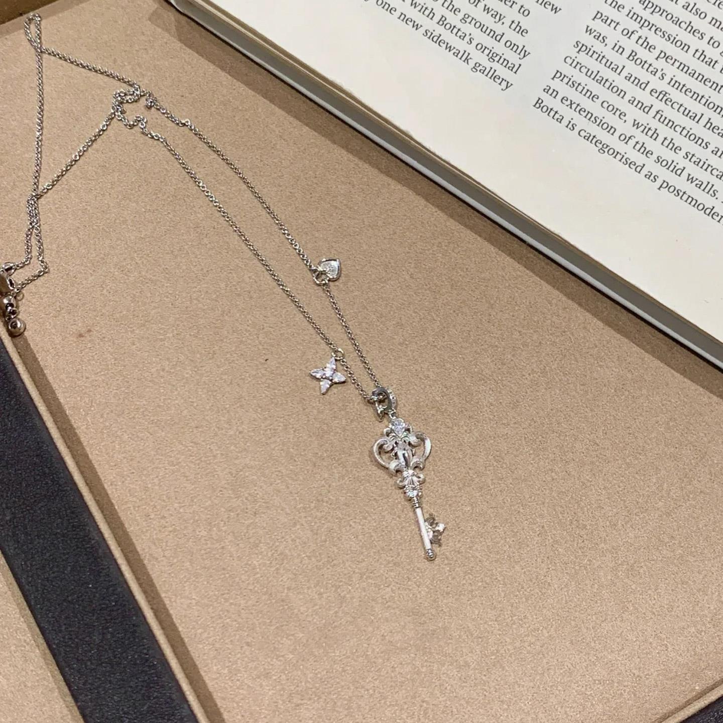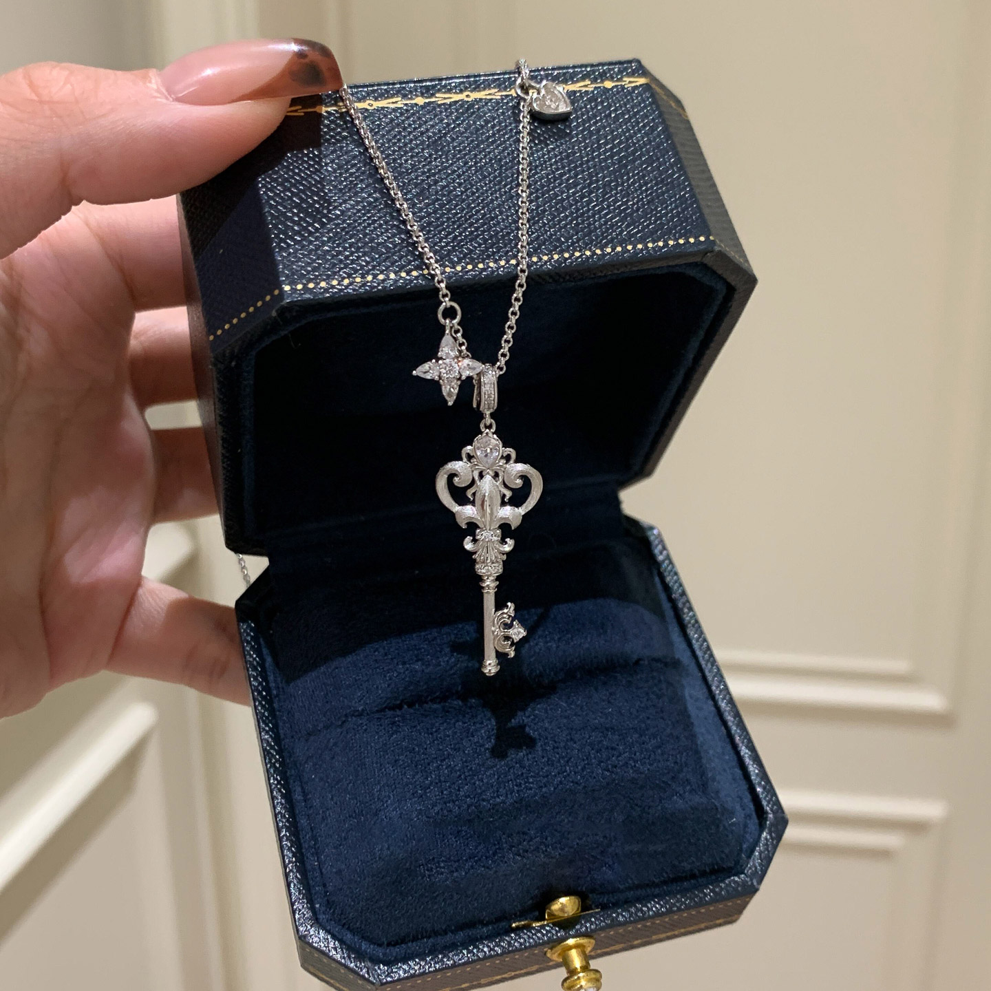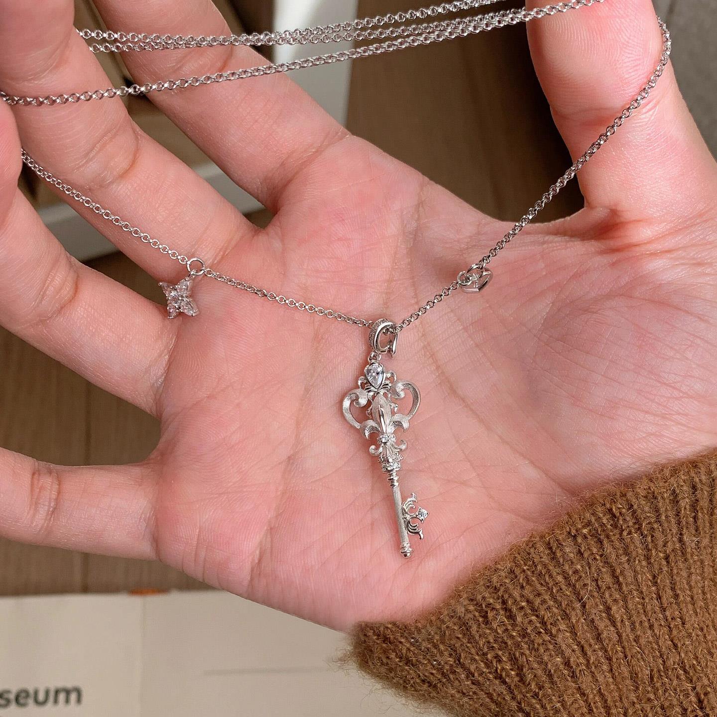 银色重工鸢尾花钥匙项链女2025新款爆款吊坠轻奢小众高级感锁骨链