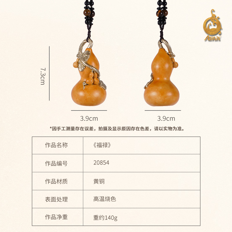 全铜葫芦挂件《福禄》桌面铜摆件 家居装饰 铜手把件 礼品送领导