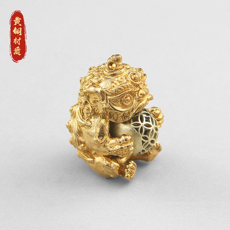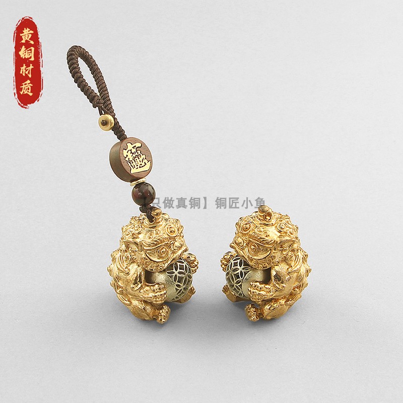 纯铜醒狮抱球转转手把件舞狮子貔貅抱珠汽车挂件时来运转钥匙吊坠