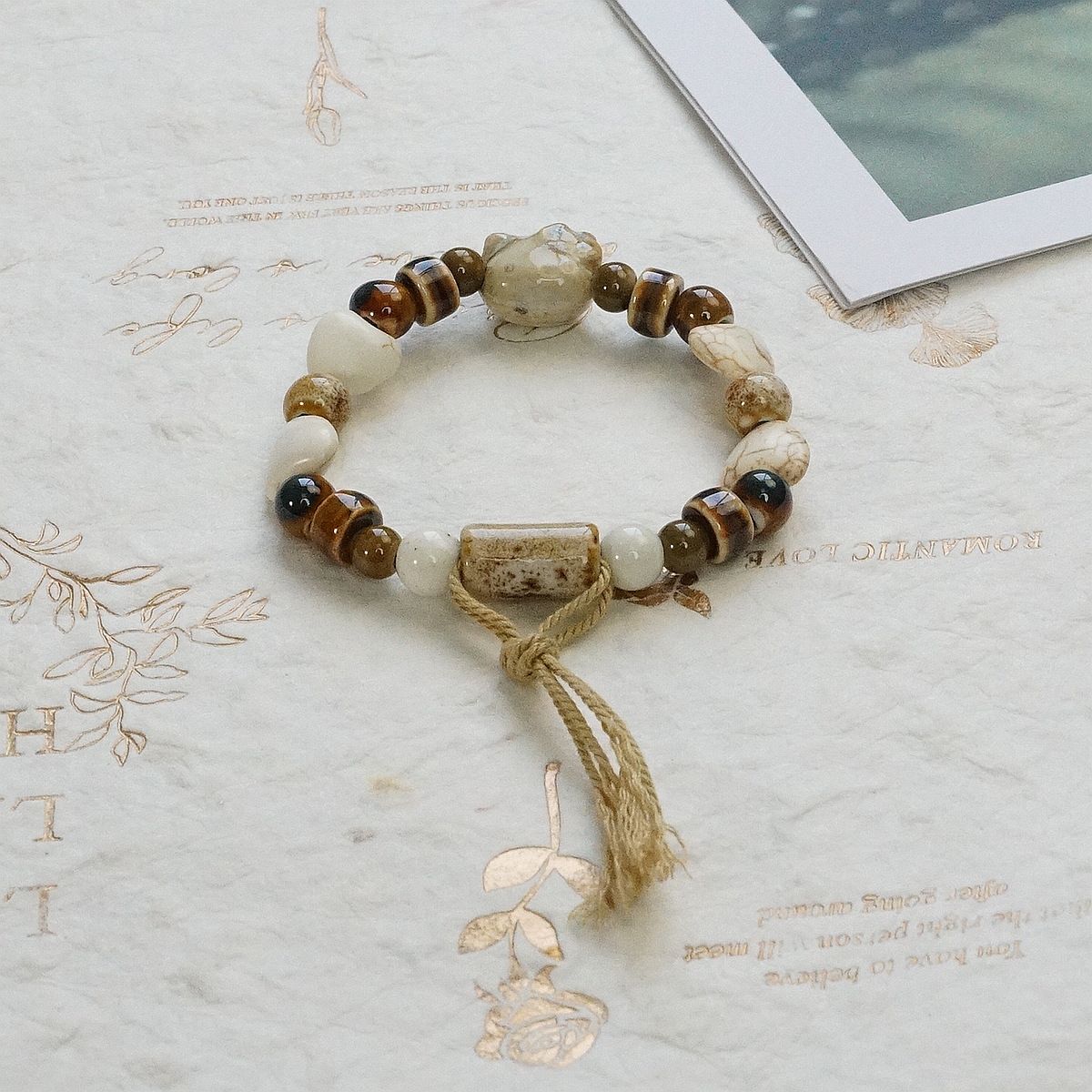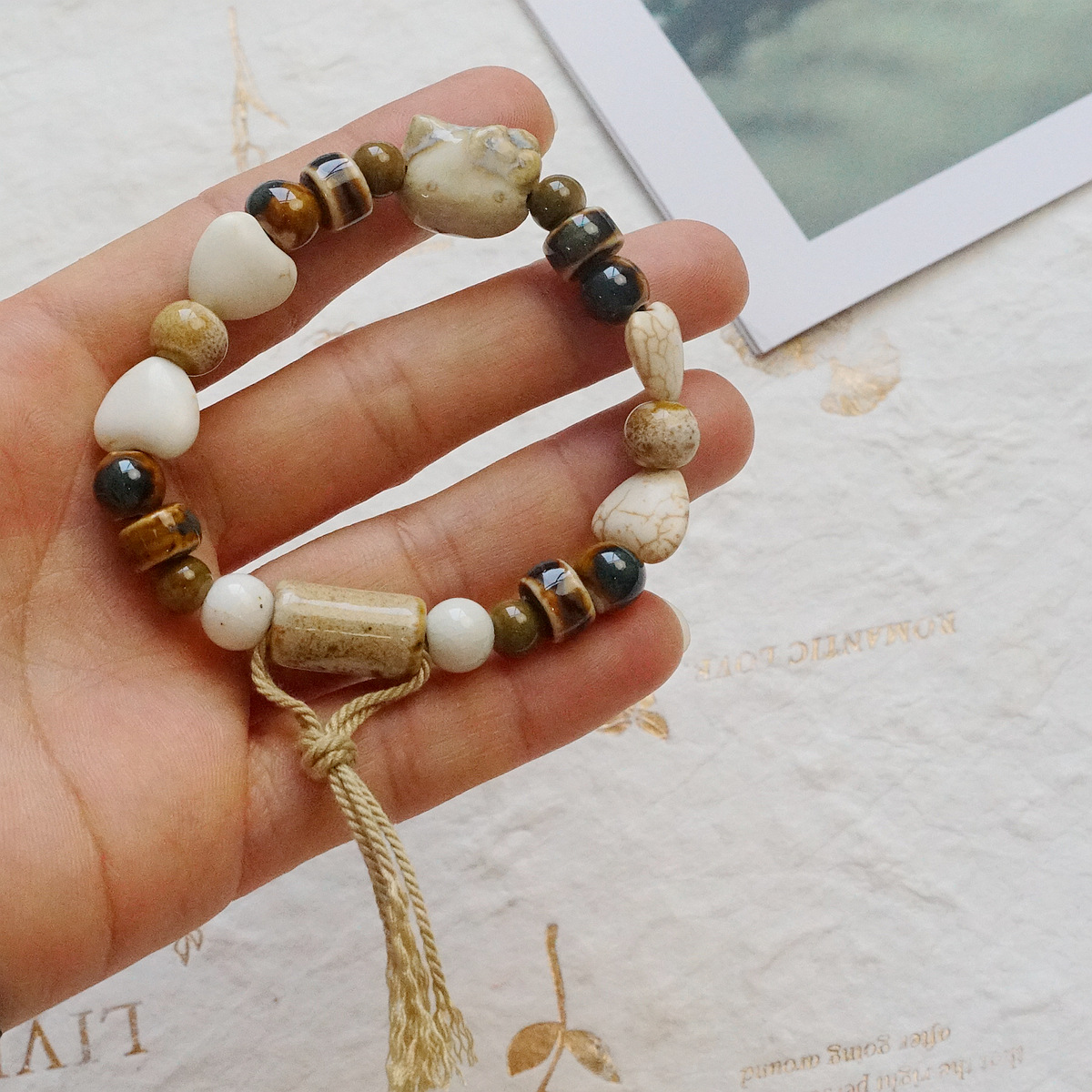 景德镇热销陶瓷清新可爱狗狗喵喵手链饰品串珠文艺闺蜜夏季百搭