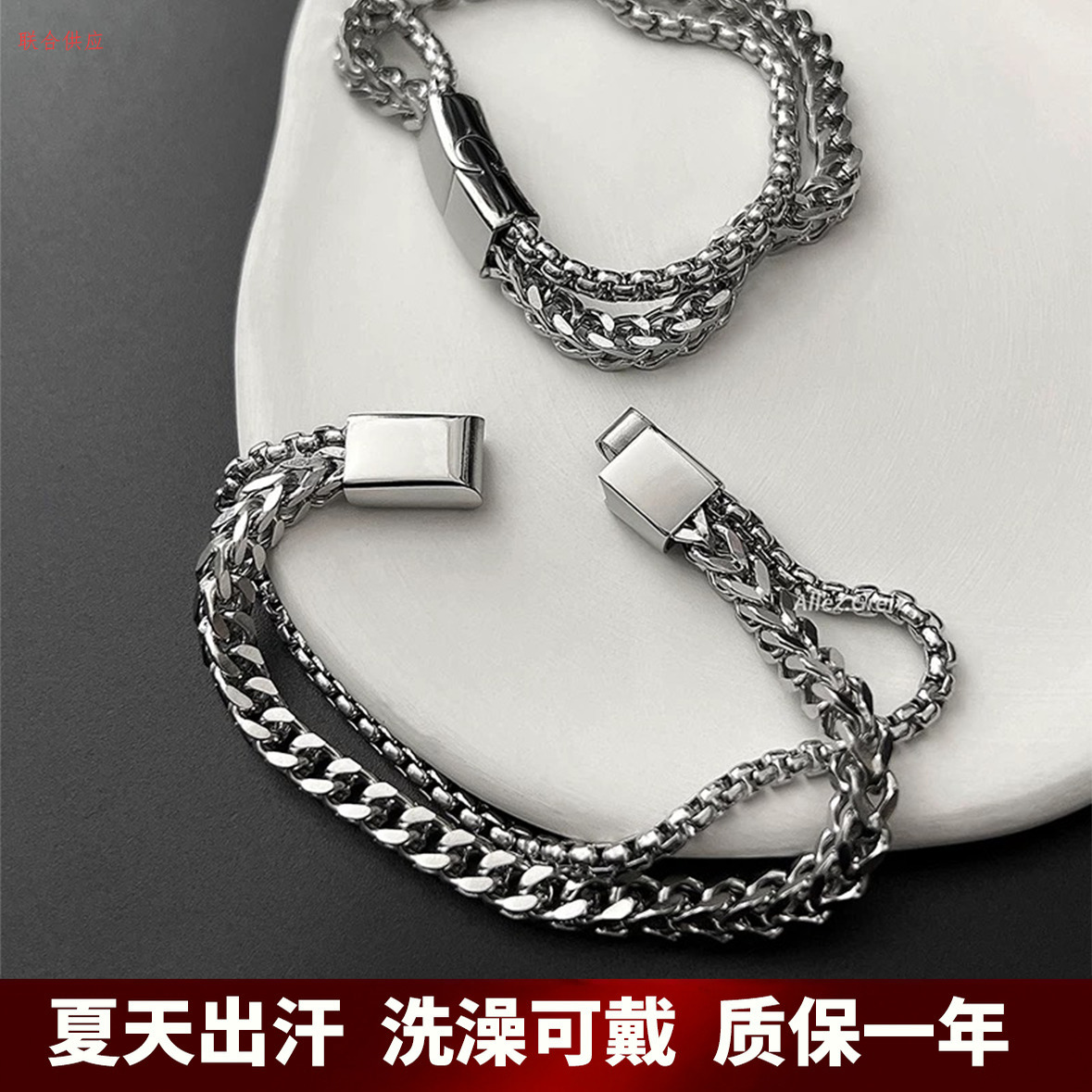 极简冷淡风手链男潮ins小众设约钛钢男生嘻哈简约手饰不掉色手镯