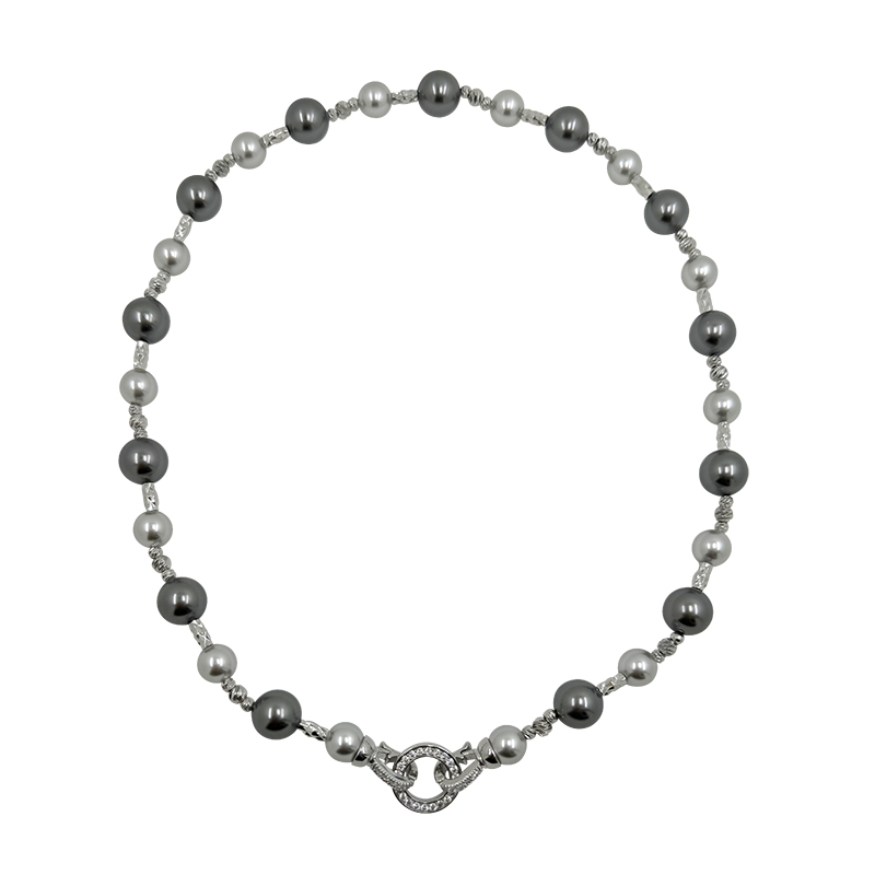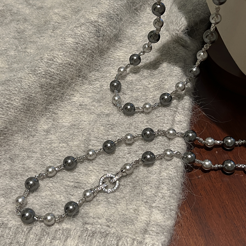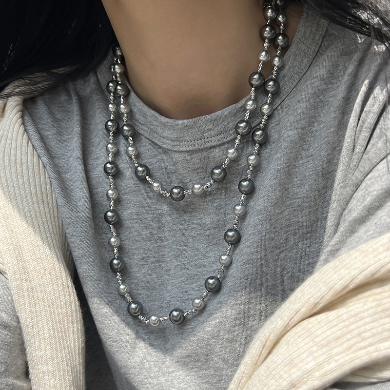 方糖家 倪妮大溪地深灰色混彩珍珠高级感项链轻奢小众设计毛衣链
