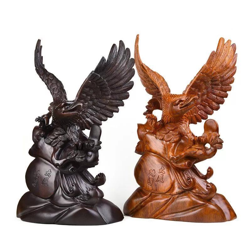万传花梨木雕老鹰摆件大展宏图鹰实木家居客厅办公摆设雄鹰工艺品