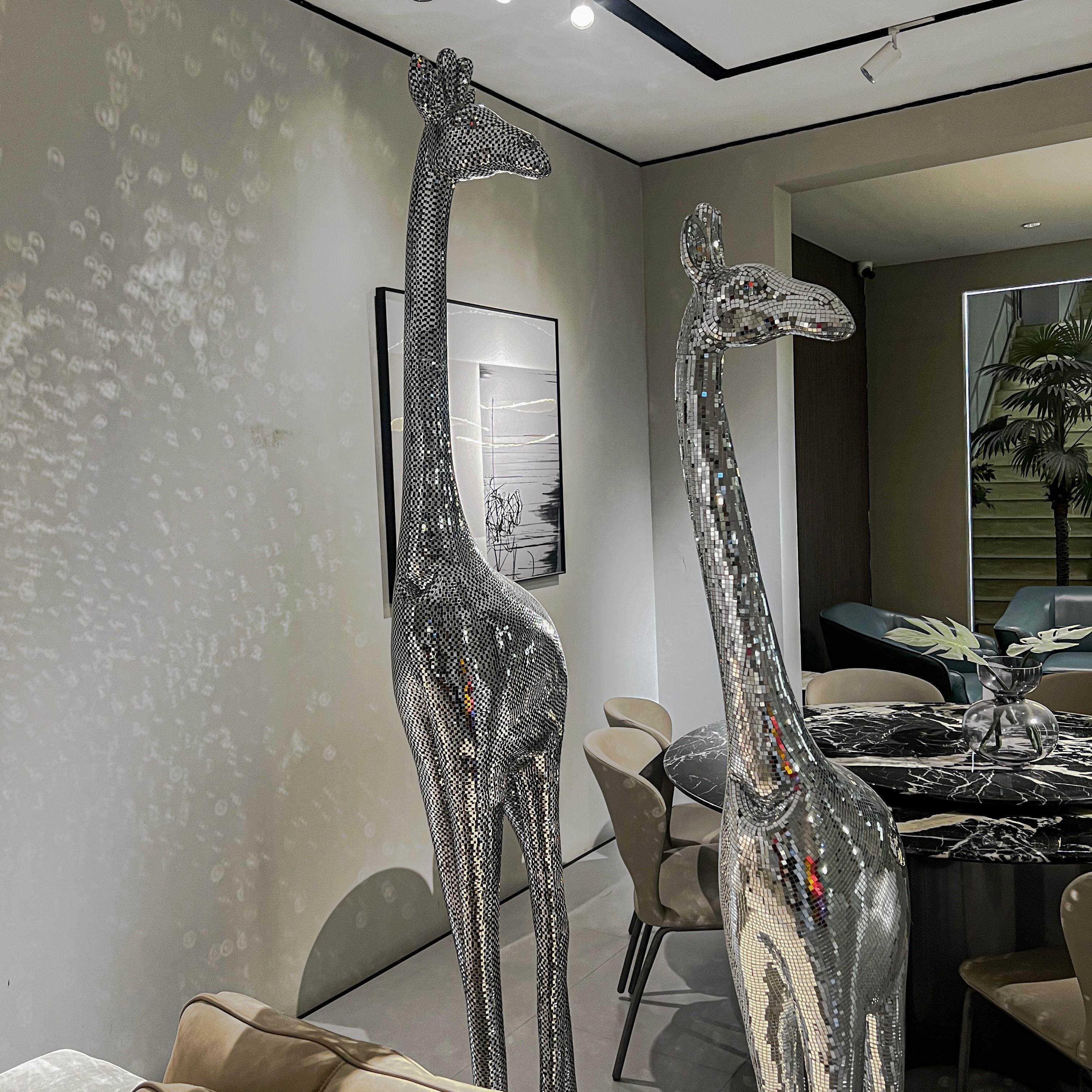 纯手工玻璃马赛克贴片长颈鹿雕塑 发光落地艺术摆件仿真动物造景