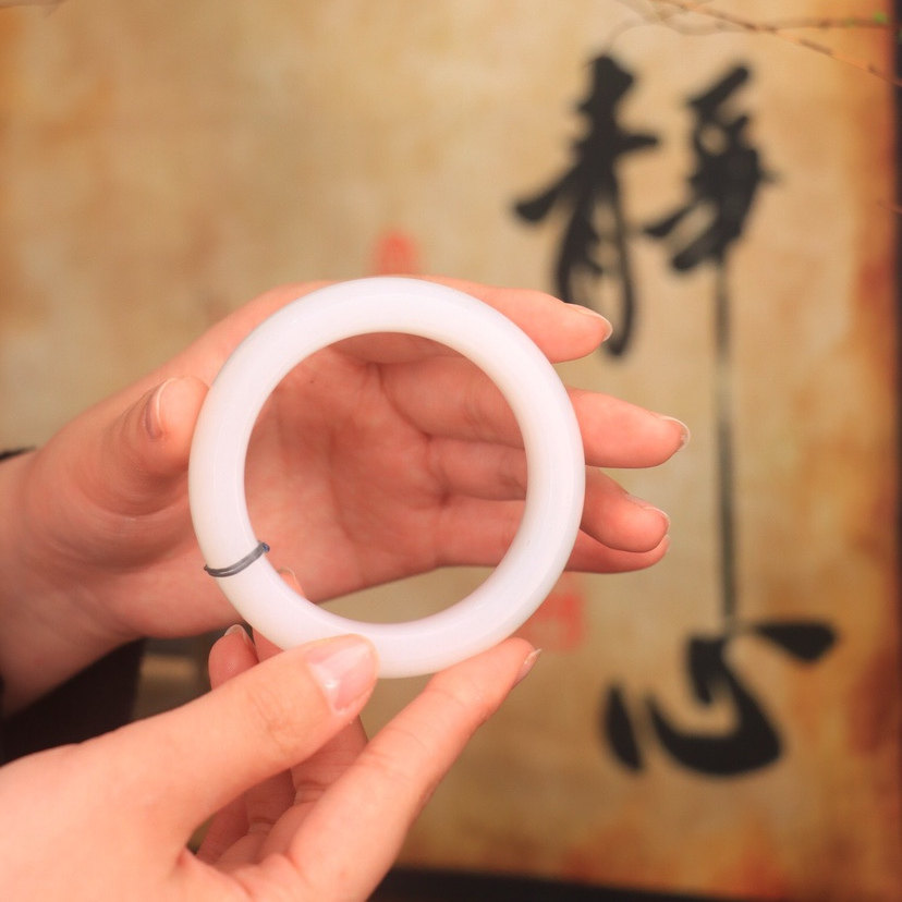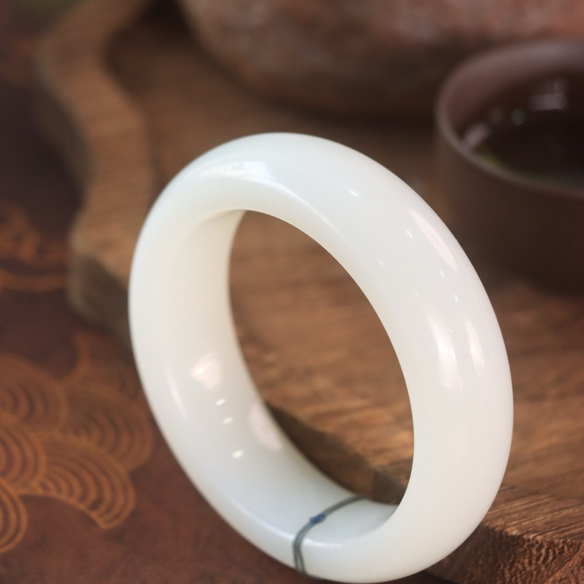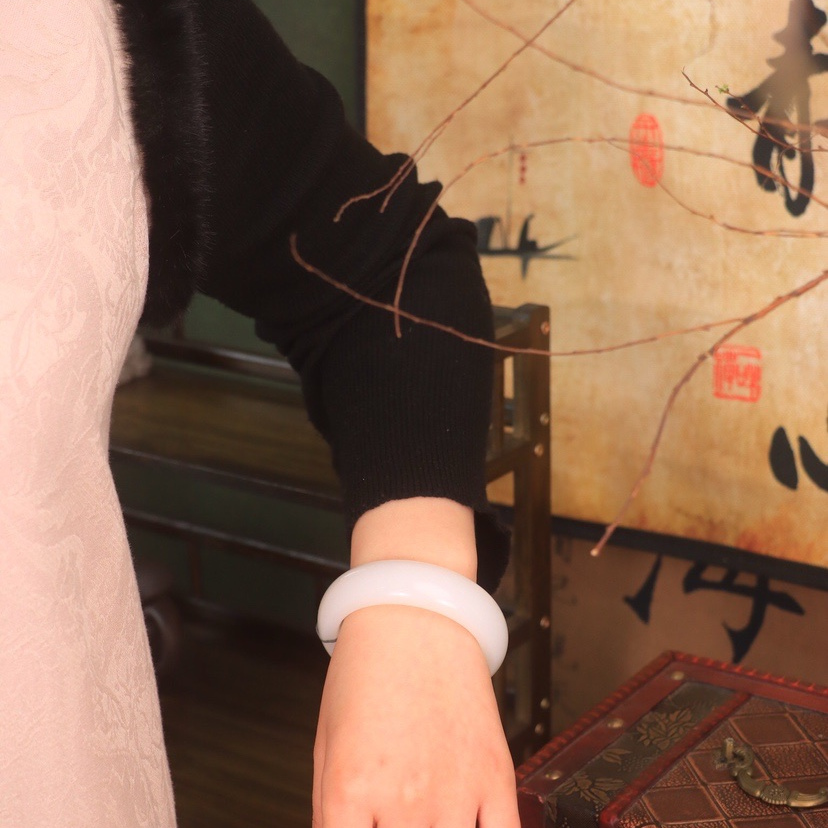 新疆和田玉羊脂白玉轮胎宽条手镯大正圈口玉石镯子送妈妈油润玉镯