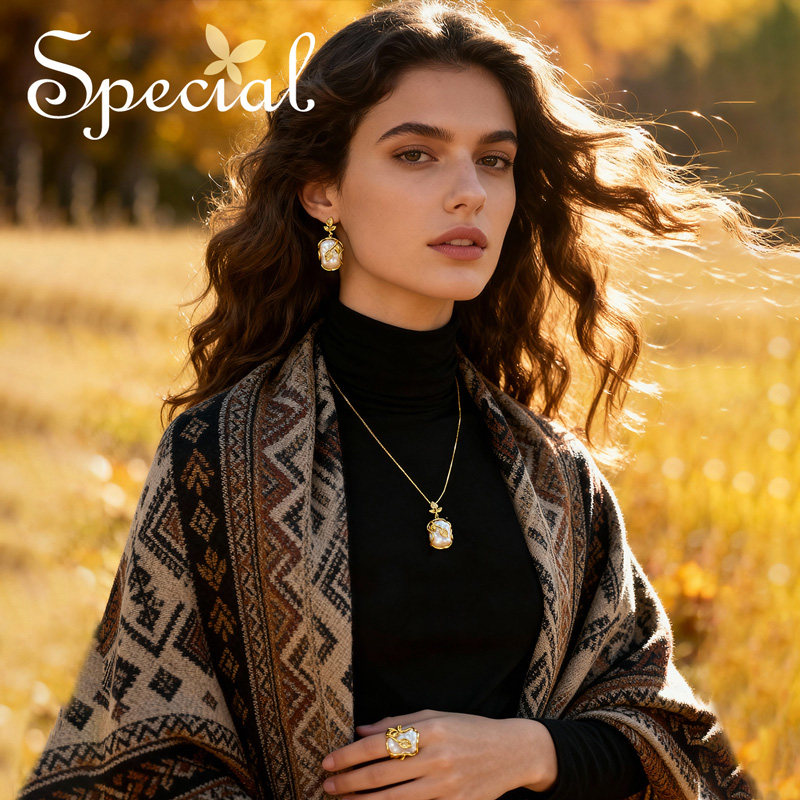 SPECIAL巴洛克淡水珍珠轻奢耳钉耳饰戒指项链吊坠套装女2025礼物
