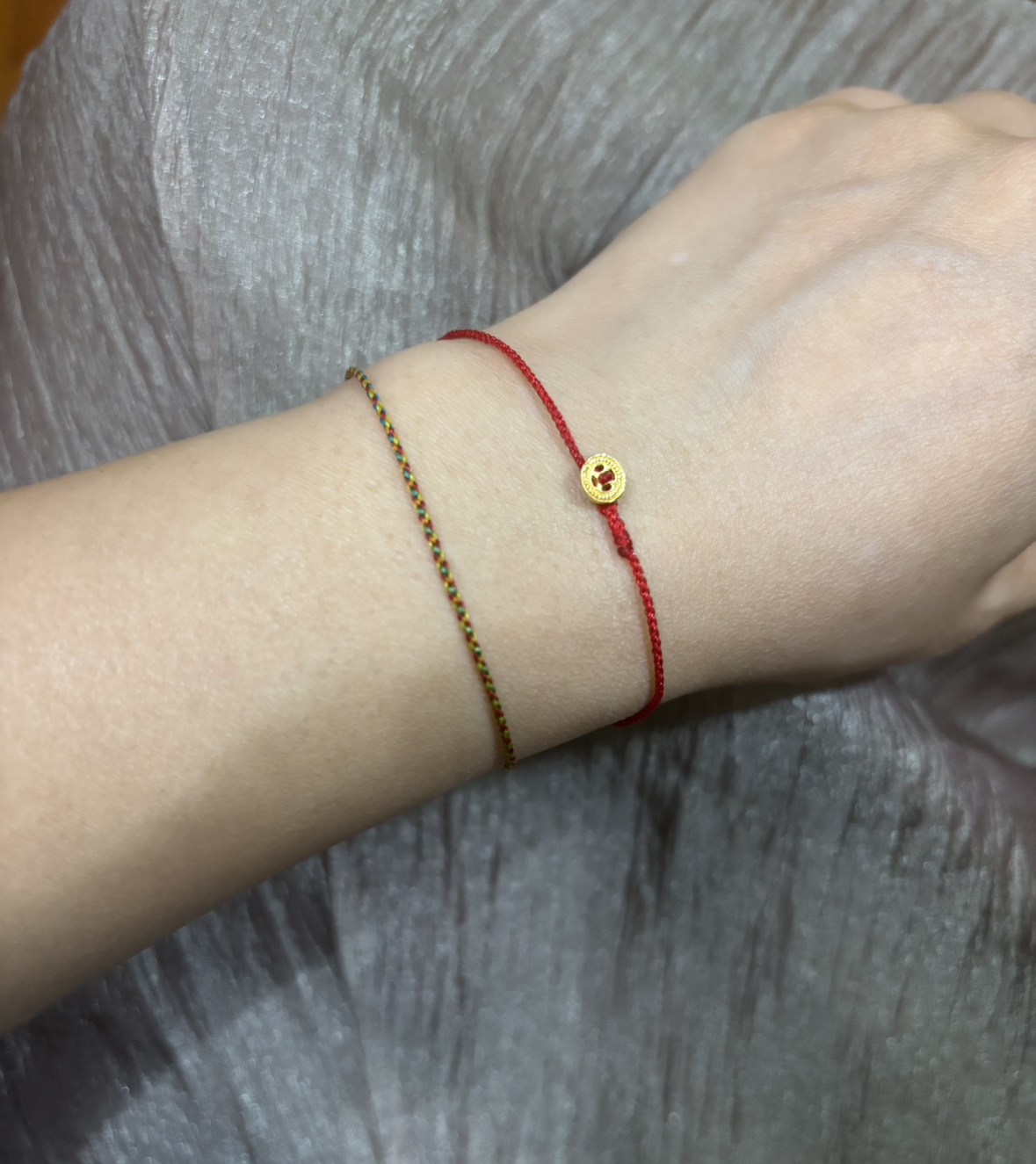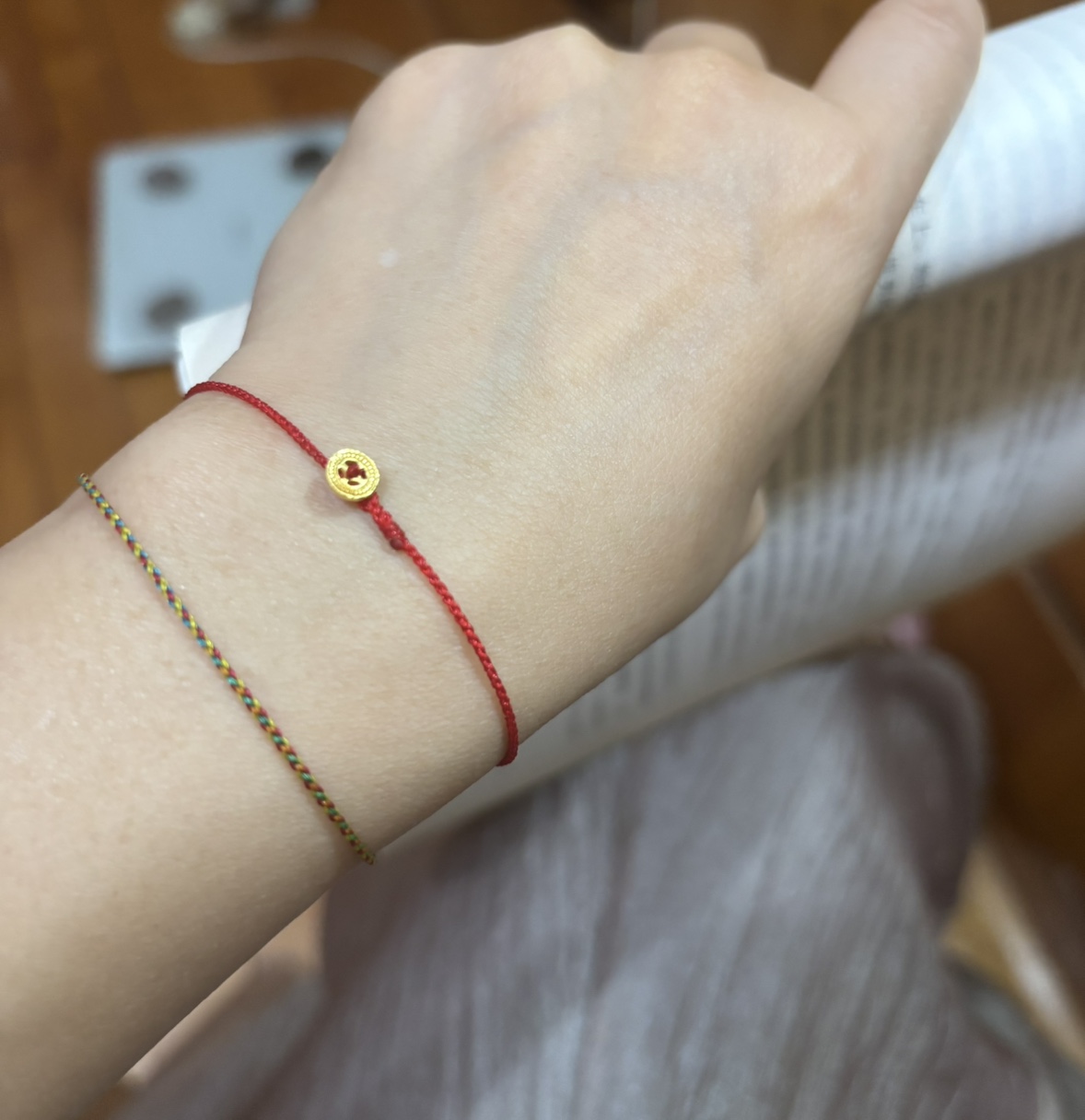 足金纽扣手绳 锁住日常小幸运四股辫结超细红绳手链手绳女