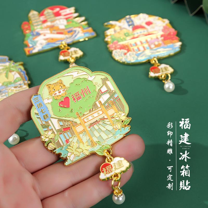 中国城市旅游福建厦门双子塔文创意金属磁吸冰箱贴磁贴纪念品定制