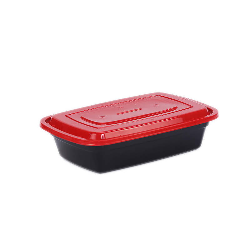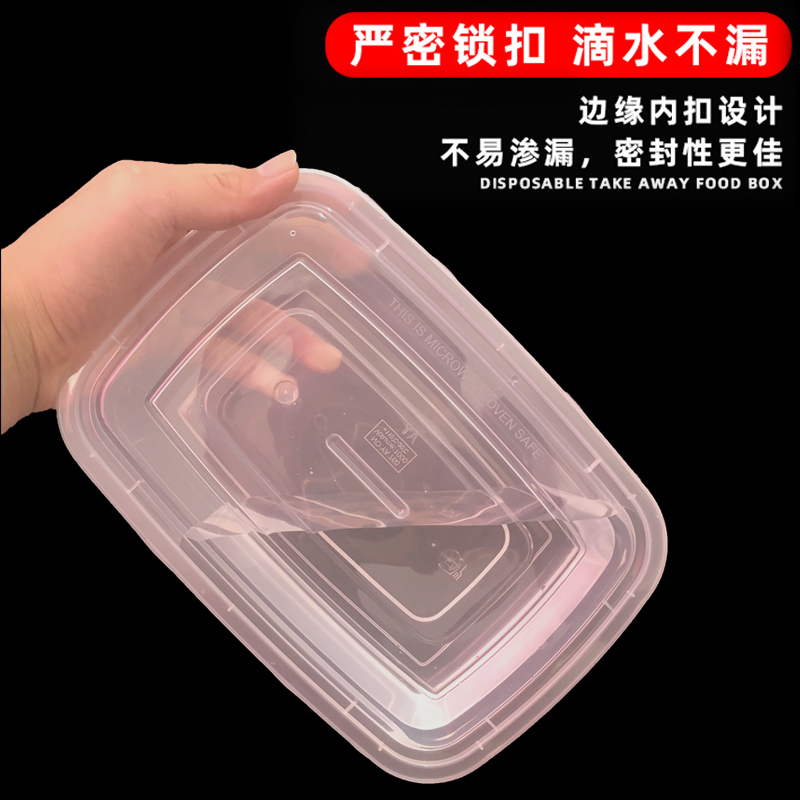 一次性餐盒750ml长方形美式1000饭盒凸盖套餐打包外卖盒红盖商用