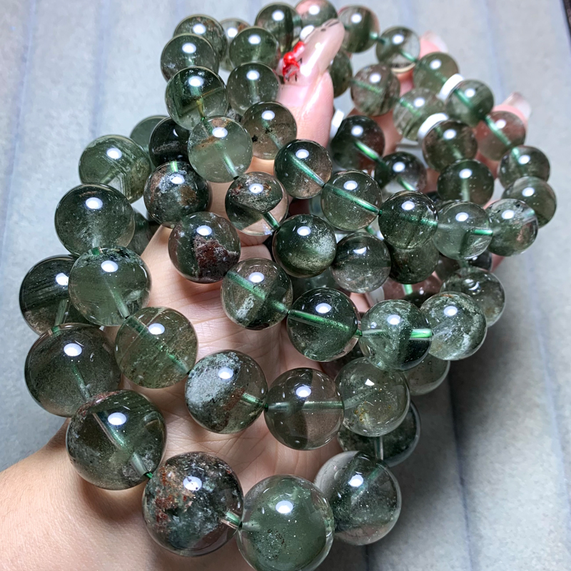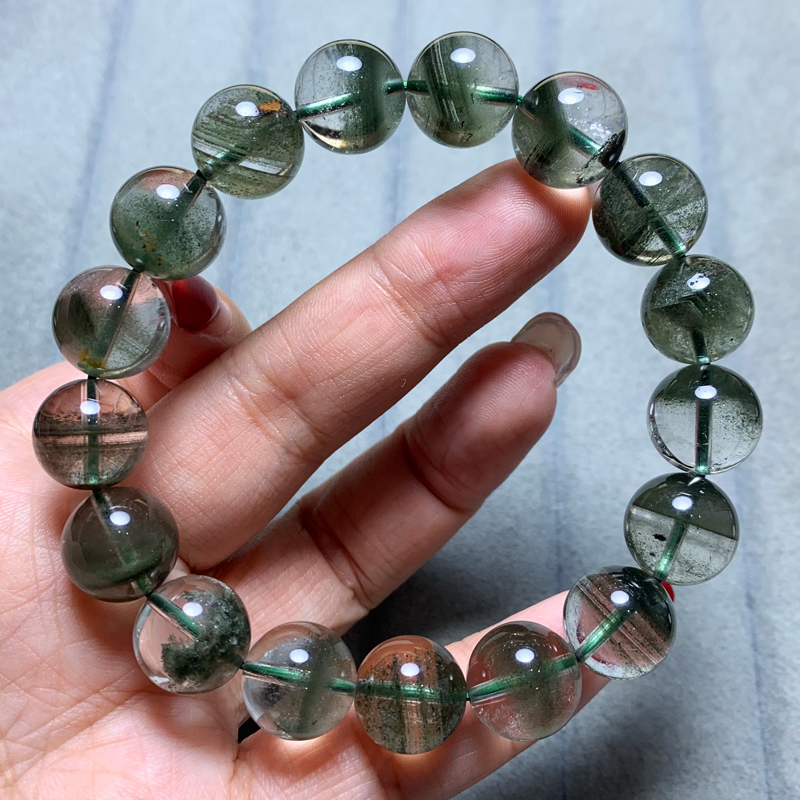 天然幽灵水晶单圈手链聚宝盆半盆绿宝石水晶千层饰品一物一图礼物