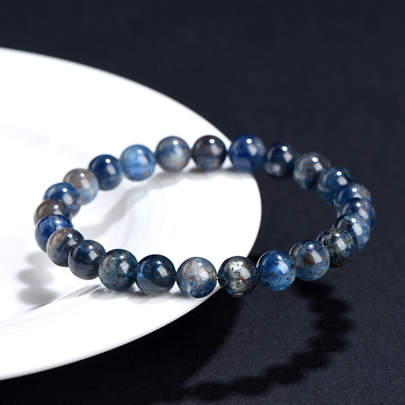 久雅水晶天然闪片老矿血滴蓝晶石圆珠手链共生蓝晶石散珠手串