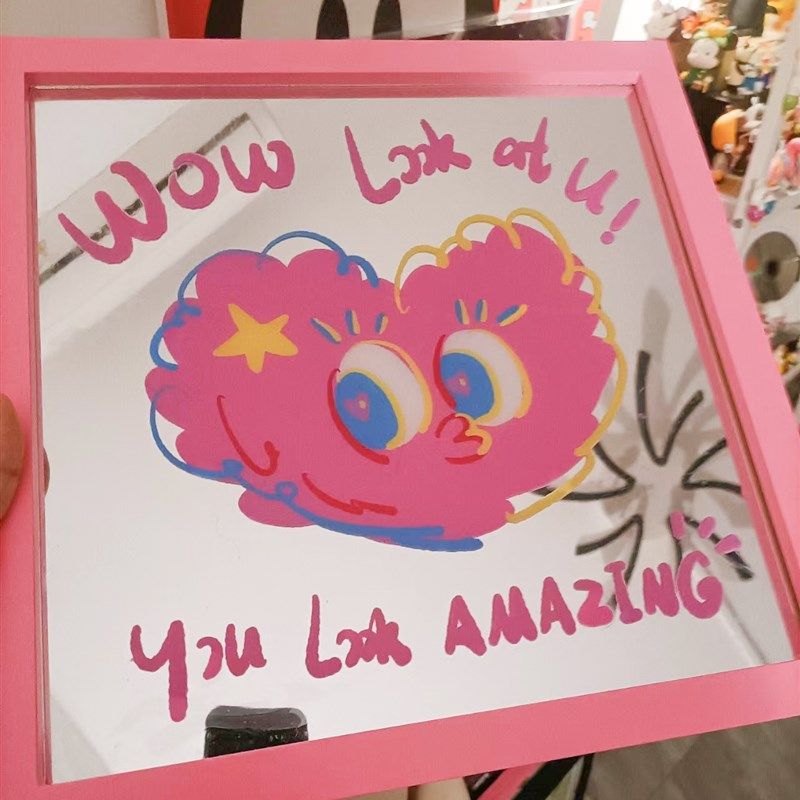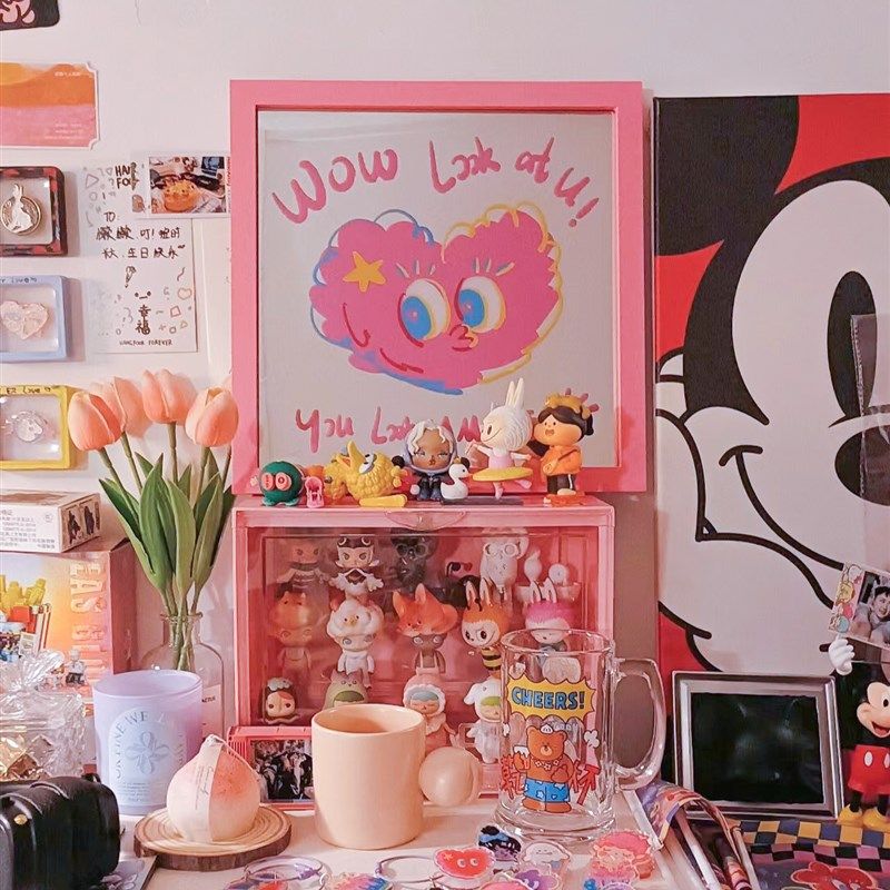 极速粉红色少e女心卡通镜子装饰挂画卧室ins风房间布置镜面桌面摆