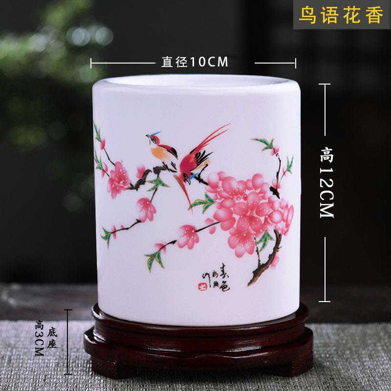 景德镇陶瓷笔筒中式礼品摆件毛笔定制笔筒大容量办公书房桌面收纳