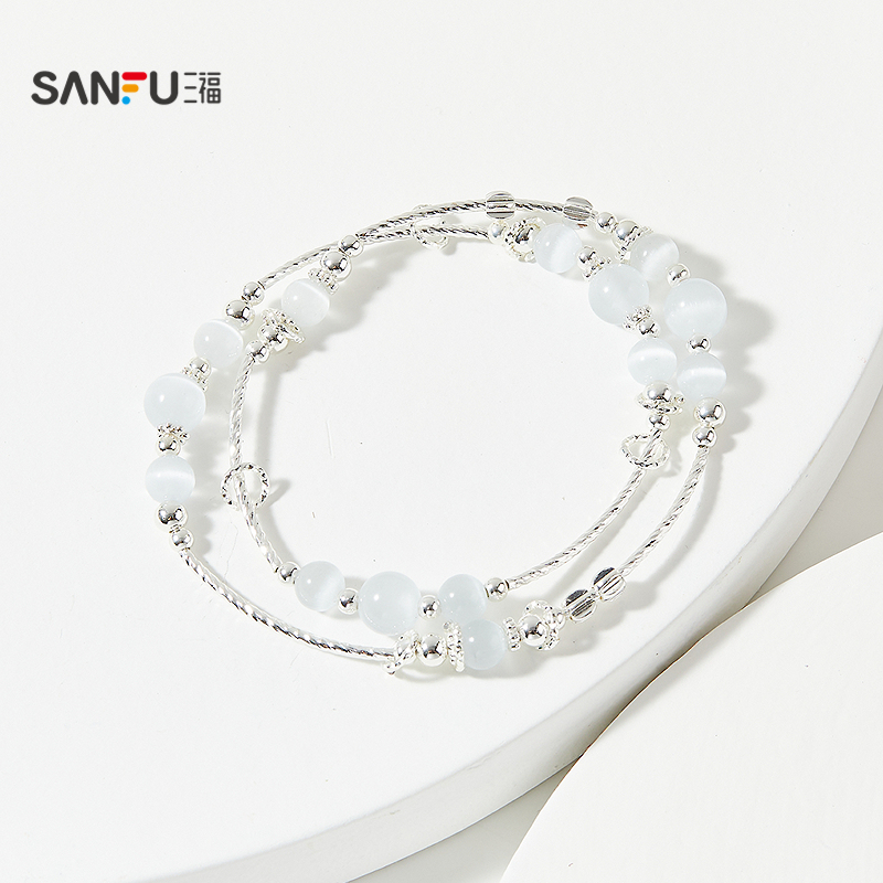 三福手作猫眼系手链单条 时尚气质小众设计感首饰818294