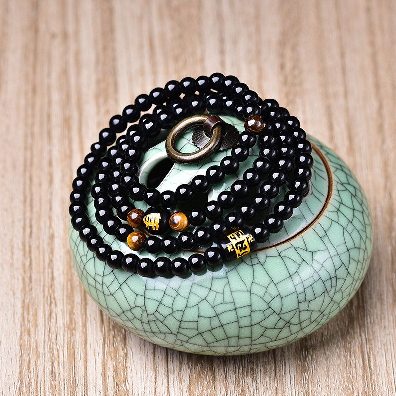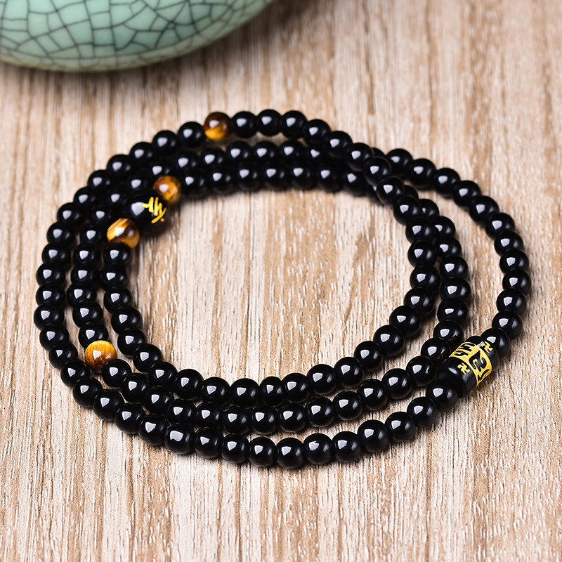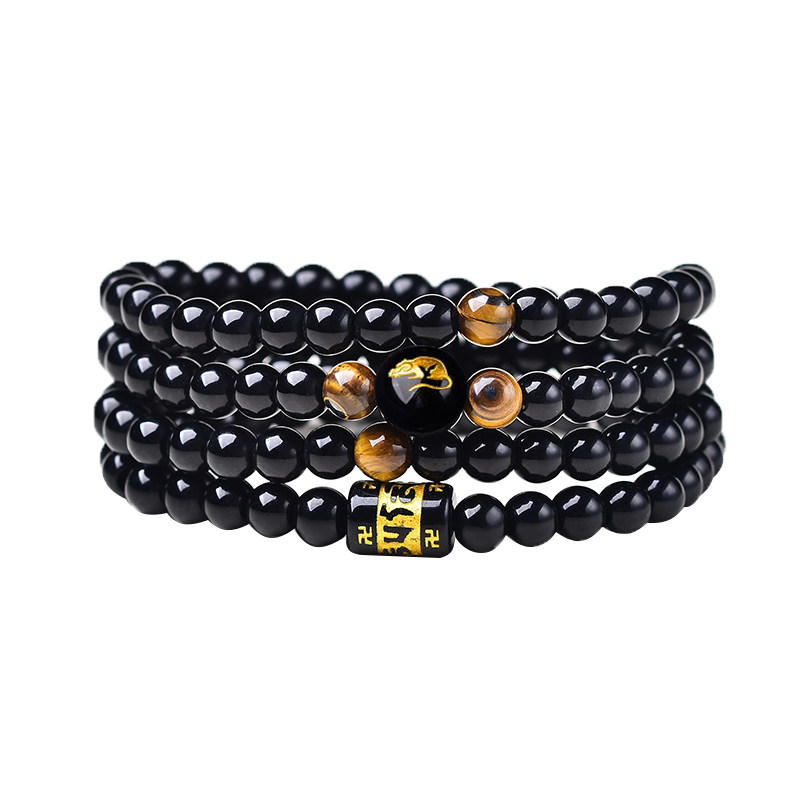 黑曜石十二生肖手链情侣款六字箴言手串男士女学生国风潮流礼物