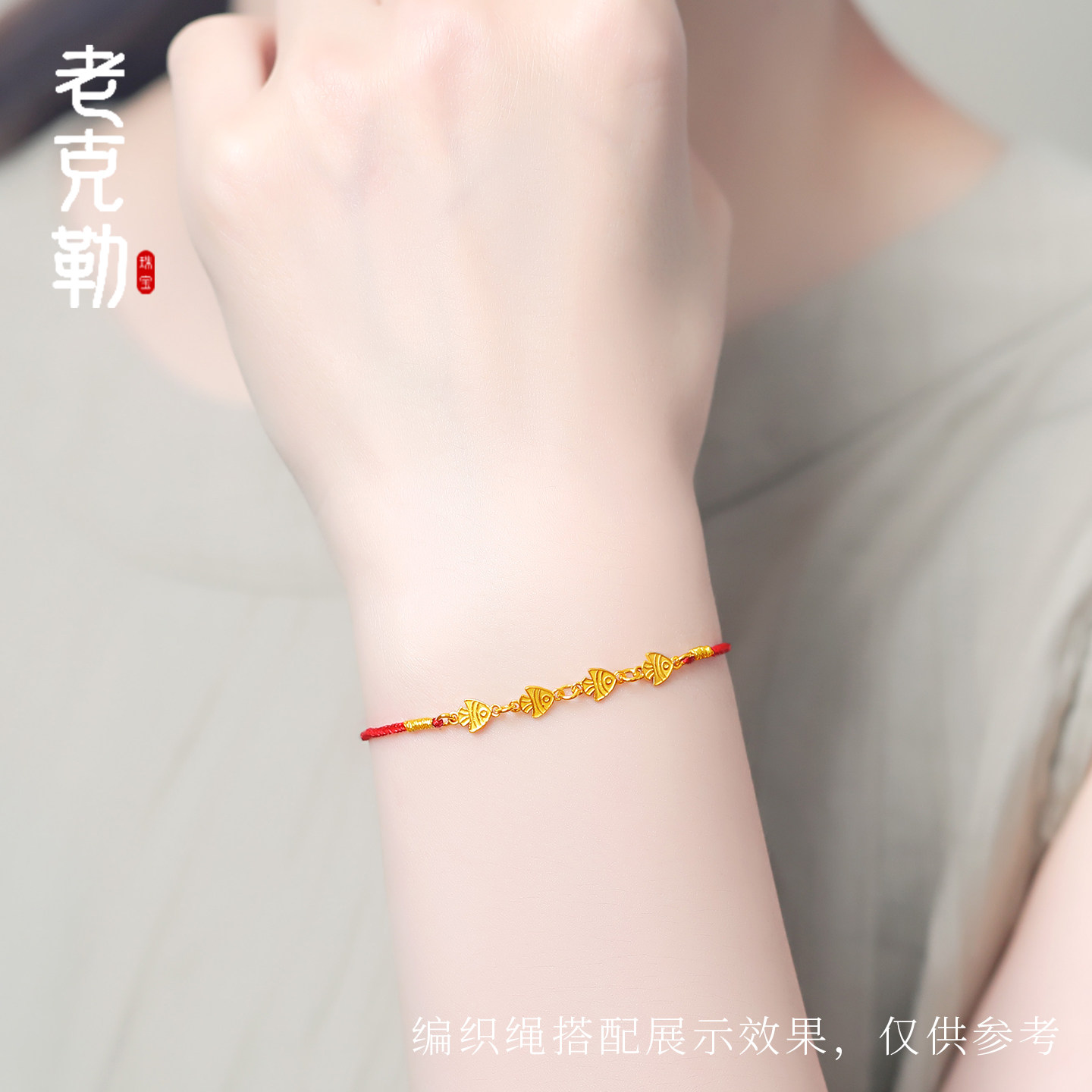 老克勒古法黄金小鱼福气葫芦花朵连接链足金手链DIY配饰编织配件