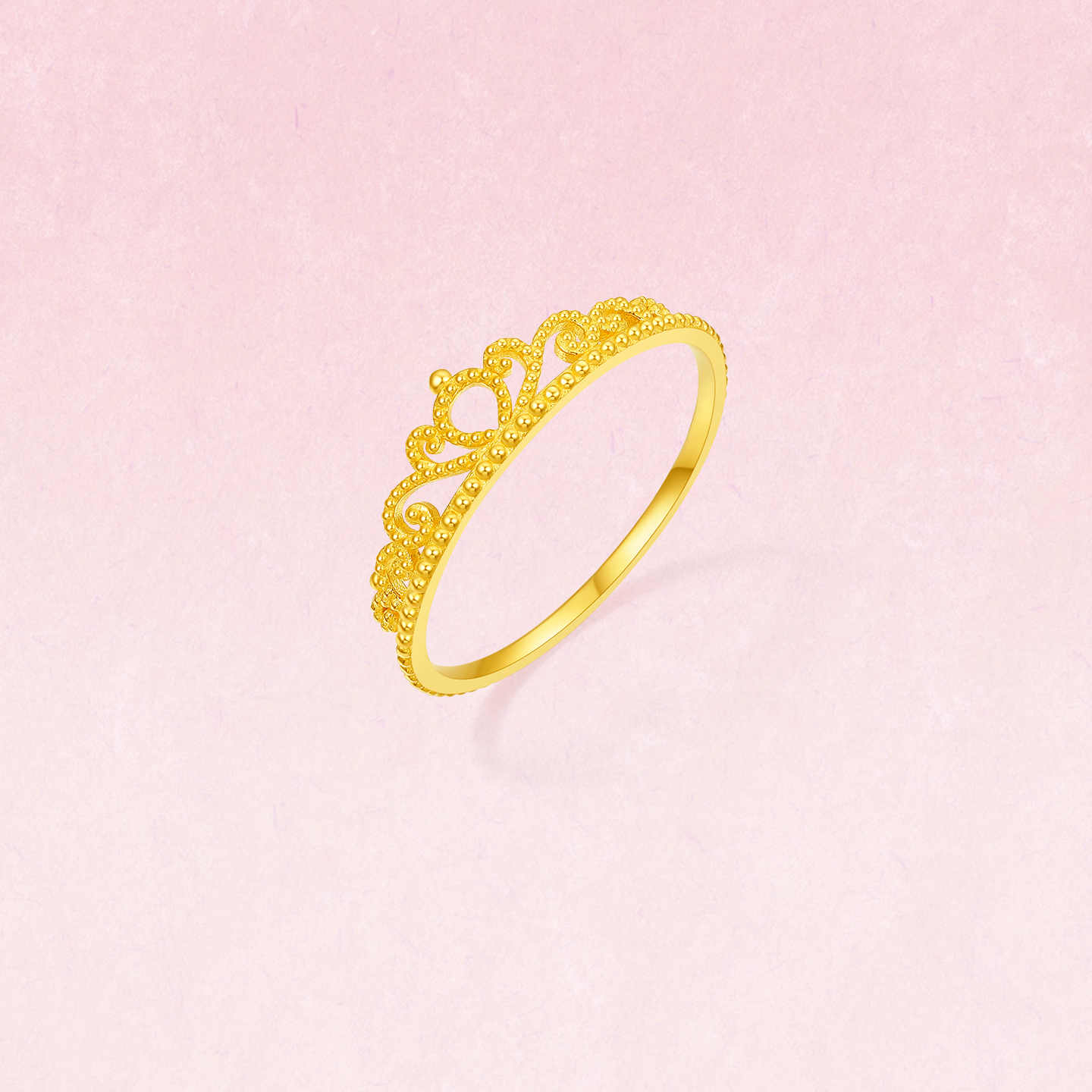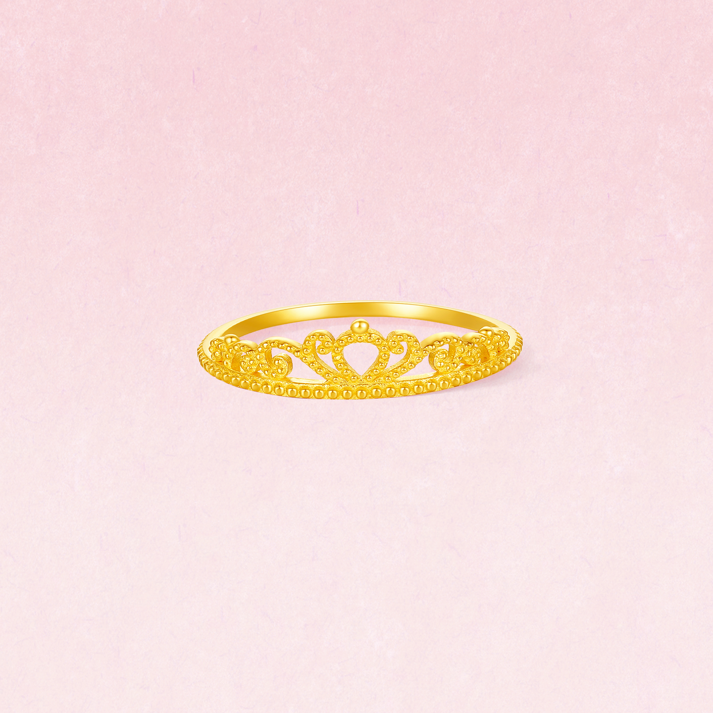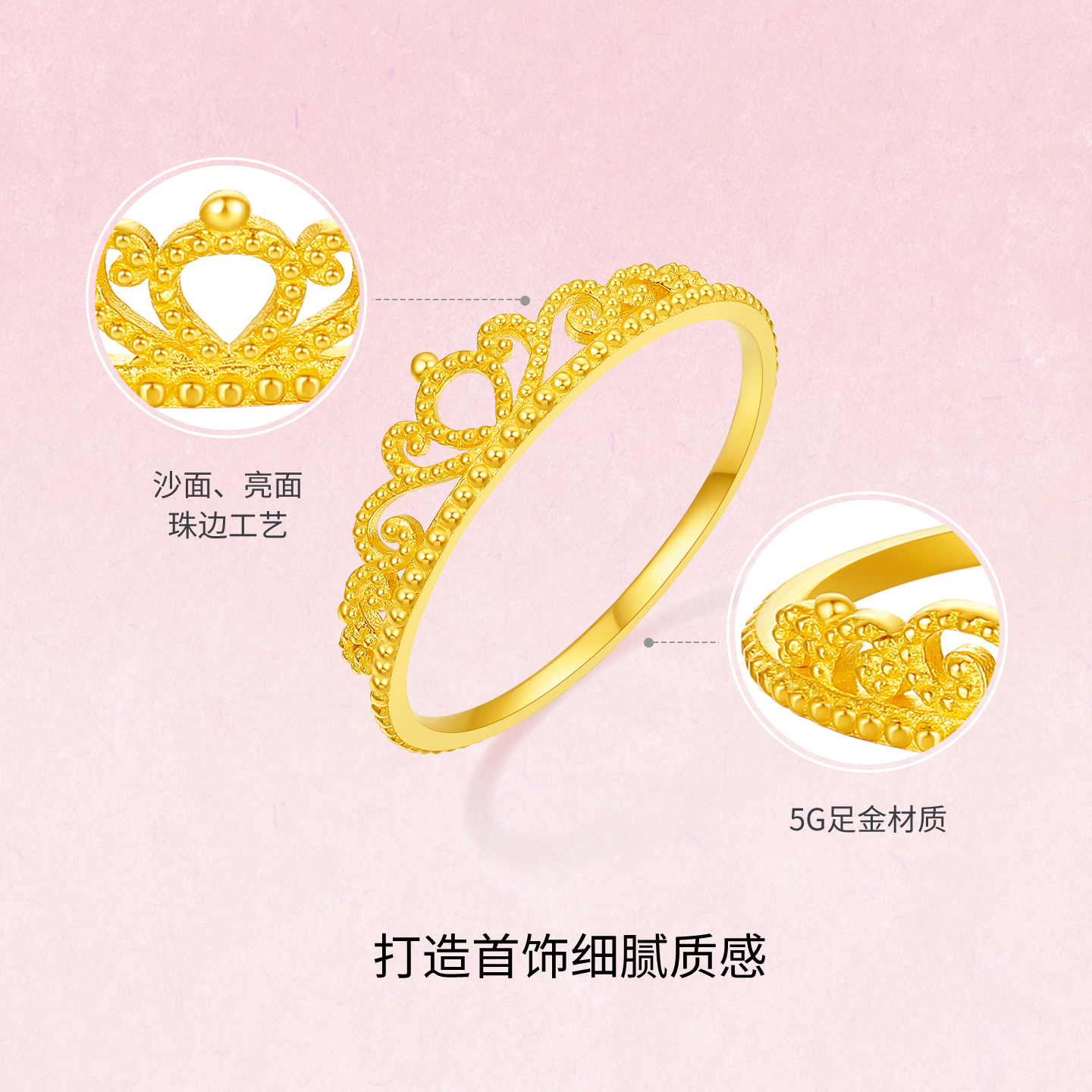 周六福黄金计价5G足金戒指复古宫廷公主皇冠女戒蕾丝系列节日礼物